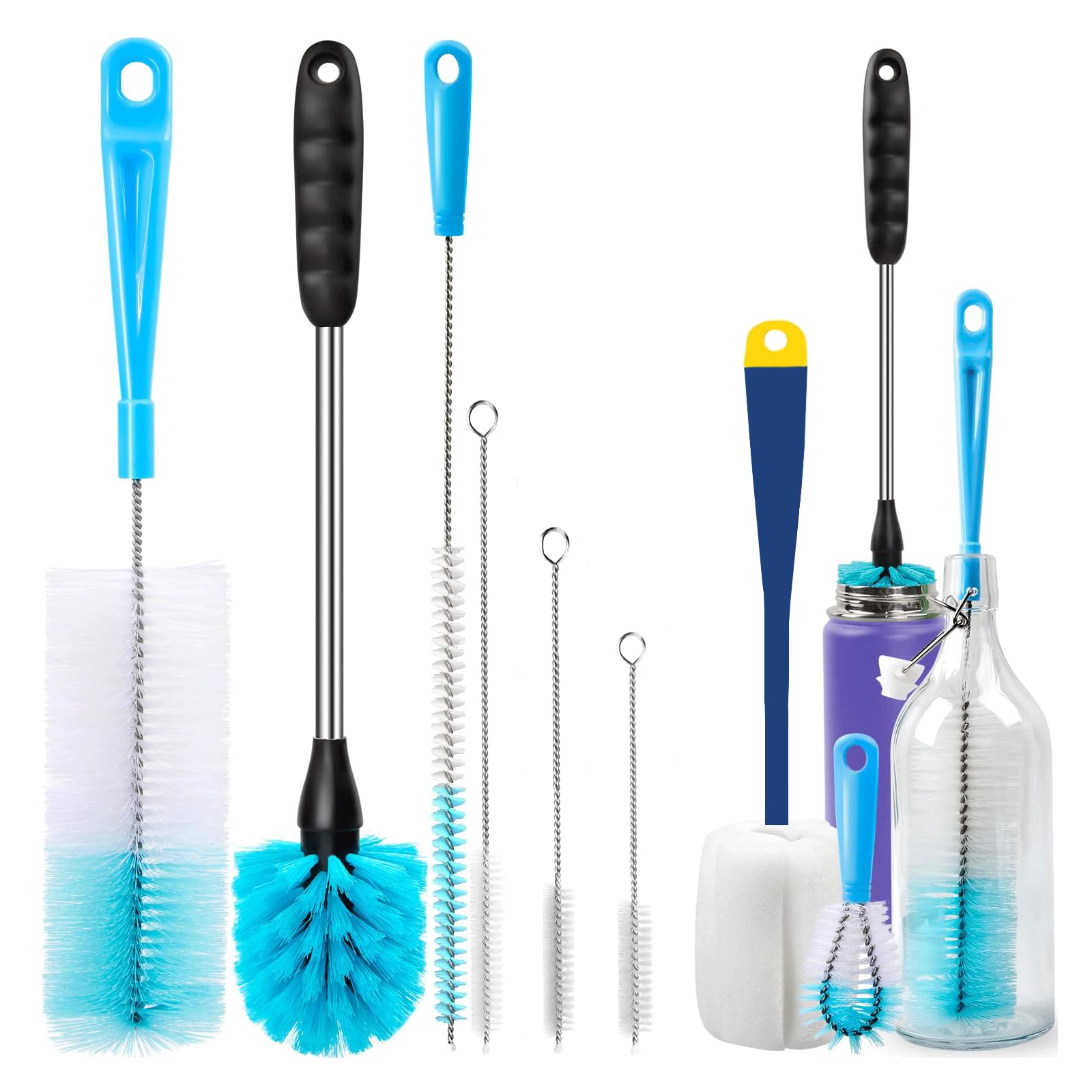 Brosses de Nettoyage Longues, Set de 3, Goupillon pour Bouteilles, Bouilloire, Carafe à Col Étroit | Leroy Merlin Goupillon Bouteille En Verre 1,5l 2 Pcs Long Manche Brosse De Bouteille, Brosse De Nettoyage De Bouteille, Goupillon Des Bouteilles Longue, Brosse U00e0 Biberon Pour Bu00e9bu00e9, Pour Nettoyer Les Bouteilles, Les Tasses Large Gamme d'Utilisations : convient pour nettoyer les biberons, les verres, les bouteilles thermos, les bouteilles d'eau de sport et divers récipients. 280 mm / 11,02 pouces Tête de brosse : environ 30 mm * 70 mm / 1,18 pouces * 2,75 pouces Le Forfait Comprend : 2 x Brosse de Nettoyage de Bouteille Le dessus lisse à poils incurvés frotte facilement toutes les zones de la bouteille. Nettoyage en profondeur] le long manche et les poils flexibles en silicone vous permettent de nettoyer tous les coins, les débris et les zones difficiles d'accès des bouteilles, des infuseurs à thé/fruits, des bouteilles d'eau, des récipients à café, des tuyaux et des équipements de cuisine Longue Poignée : conception ergonomique de la poignée, poignée allongée, facile à nettoyer le fond des bouteilles relativement longues. Matériaux de haute qualité] Dimensions : 40 x 9 x 3,5 cm. Nos brosses à bouteilles sont fabriquées en silicone de qualité alimentaire, passent au lave... Facile à Utiliser : le goupillon des bouteilles longues est facile à nettoyer, facile à ranger et le design avec des trous peut être suspendu, il n'est donc pas facile de multiplier les bactéries à cause de l'humidité. Matériau de Haute Qualité : la brosse de bouteille à manche long est fabriquée en plastique TPR, non toxique et inodore, résistant aux chutes et durable, et a une longue durée de vie.