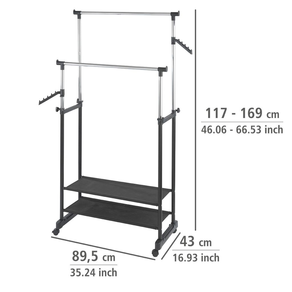 Porte-vêtements télescopique WENKO Gamme Herkules, Aménagement dressing Portant Vetements Wenko Penderie Double Portant Mobile - H. 117/169 Cm Hauteur Réglable 117-169cm 4 Roulettes Dimensions (L x H x P) : 89,5 x 117 - 169 x 43 cm Doté de deux tablettes, il offre un espace de rangement supplémentaire pour les chaussures. Idéal pour ranger, aérer et transporter des vêtements Les meilleures offres pour Porte-vêtements All in - Repliable Métal chromé 89.5 x 117-169 x 43 cm Chromé sont sur Comparez les prix et les spécificités des produits neufs et d 'occasion Pleins d 'articles en livraison gratuite Réglable progressivement en hauteur Ce porte-vêtements mobile All in crée un espace supplémentaire pour les manteaux, les vestons, les costumes et les chemises jusqu'à poids total de 50 kg. Il est aussi idéal pour aérer ou transporter des textiles Avec 4 roulettes pour être déplacé facilement Matière: Etagère: Métal chromé, Métal peint par poudrage, PolypropylèneCouleur: Etagère: Chromé, Noir, NoirDimensions L/H/P: 89,5 cm x 117-169 cm x 43 cmPoids non emballé: 3700 g