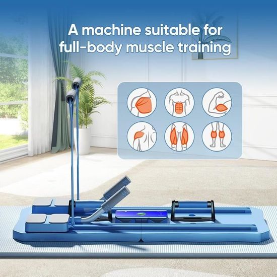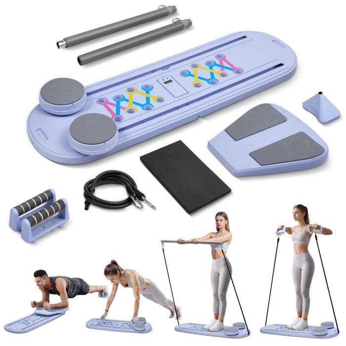 Rangement pratique Après votre séance, en quelques étapes simples, vous pouvez plier l'appareil en une plaque fine, facile à ranger sous un lit, dans un interstice de placard ou derrière une porte, occupant presque aucun espace de vie et maintenant votre intérieur propre et ordonné. Mode abdominaux : Des repose-pieds innovants intégrés à la base des poignées offrent un support stable pour vos pieds. Mode rouleau abdominal : Il suffit de retirer les poignées, les pédales se transforment instantanément en rouleau abdominal. Elle se glisse facilement sous un lit, un canapé ou se range contre un mur, idéale pour les petits espaces. Les débutants peuvent utiliser les poignées pour s'aider à garder l'équilibre, les utilisateurs avancés peuvent les retirer pour passer en mode professionnel. Planche Pilate Pilates Reformer, 5 En 1 Réformateur De Pilates Pliable Avec Minuterie Et Support De Téléphone Portable, Planche Abdominale Pilates Multifonction Pour La Maison Et La Salle De Sport (Violet Charge Max 150 Kg Dimensions 124x34x115 Cm 64 × 34 × 15 cm Charge maximale : ≤ 150 kg Matériau : PP & Métal Couleur : Violet Plage de hauteur des poignées : 63–95 cm Longueur des rails : 60 cm Liste d'emballage 1 × Machine à ski 1 × Poignée amovible 2 × Poignées de pompes 2 × Bandes de résistance 1 × Notice d'instructions Pliable pour le Rangement : La machine à ski se plie rapidement sans outil. Mettre à niveau le contrôleur Nous avons conçu un emplacement pour téléphone rotatif à 360° sur la poignée amovible. La hauteur des poignées est réglable (63–95 cm) et les poignées sont amovibles. Les adeptes du Pilates cherchent souvent des équipements adaptés à différents exercices pour maintenir leur routine d'entraînement à domicile. Ce kit réformateur de Pilates à prix réduit... Pourquoi choisir notre machine à ski multifonction ? Cinq modes d'entraînement : Mode cardio ski : Simule le glissement latéral du ski. Vous pouvez regarder en vous entraînant : mode paysage pour suivre des tutoriels fitness et garantir des mouvements corrects ; mode portrait pour suivre des cours en direct en synchronisation avec le coach. Pas besoin de changer d'équipement pour effectuer efficacement des exercices pour les abdominaux, la force du haut du corps et la sculpturation des fessiers. Mode bandes de résistance : Livré avec deux bandes élastiques. Plus stable et plus sûre : La conception plate de cette planche de Pilates multifonctionnelle est plus stable que les rouleaux abdominaux traditionnels. Sa surface élargie permet une répartition optimale de la force, assurant des mouvements fluides et contrôlés et réduisant les risques de basculement Le Pilates Reformer : ses 5 bienfaits | La Parenthèse Nice Spécifications du produit Nom du produit : Machine à ski multifonction (5 en 1) Dimensions (déplié) : env.
