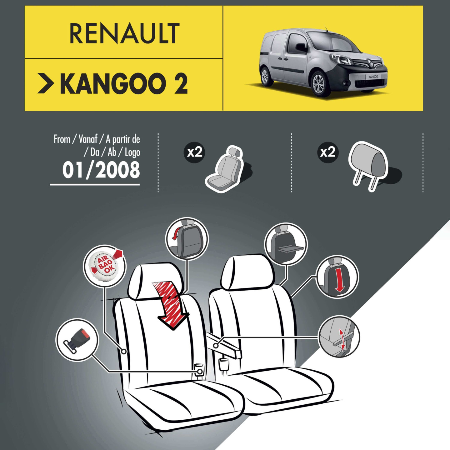 ★Les photos sont données à titre indicatif uniquement, le produit réel prévaut. Notre jeu de housses sur mesure pour Renault Kangoo 2 épouse idéalement les sièges et est compatible avec toutes les fonctionnalités de votre véhicule, les options d'origine, ainsi que les airbags ★ Protège votre siège auto de la saleté, des éclaboussures, des taches, des miettes et des poils d'animaux. 🚗【Service satisfaisant】:Nous vous répondrons dans les 24 heures et vous fournirons une solution satisfaisante. Aucune expérience professionnelle n'est requise : elles s'installent rapidement et facilement. 🚗【Universelles toutes saisons】: Plus besoin de changer fréquemment de style été/hiver. 🚗【Protection parfaite】: Ces housses de siège préservent vos sièges de voiture des éclaboussures, de la transpiration, de la saleté, des taches et des poils d'animaux. Disponibles dans différents matériaux, couleurs et motifs, elles s'adaptent parfaitement aux dimensions des sièges de votre Renault Kangoo. Faciles à installer et à entretenir, nos housses de siège vous offrent confort et durabilité pour tous vos trajets en voiture Profitez pleinement de la compagnie de vos chiens et enfants pendant le voyage, sans craindre qu'ils ne salissent. Housses siège Renault Kangoo 2 - Airbag et Isofix Housses Respirantes Antidérapantes CWMBM 3 Pièces Housse De Siege Voiture Pour Renault Kangoo Second Generation X61 2007-2021, Coussin Siege Voiture Protection Siege Voiture Coussin Siege Auto Couvre Siege Voiture,Re-d Protection Contre Poils Animaux 🚗【Matériaux de haute qualité】: Nos housses de siège sont fabriquées à partir de matériaux de haute qualité, résistants aux plis, sûrs, écologiques et confortables. 🚗【Nettoyage et entretien】★ Nettoyer avec un chiffon doux légèrement humide. ★ Le nettoyage à sec peut être effectué à l'eau, ce qui est optimal. ★ En raison des différences de luminosité et de réglage de l'écran, la couleur de l'article peut être légèrement différente de celle des photos. Merci de votre compréhension.