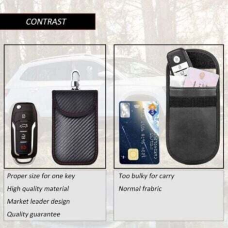 L'un de l'intérieur est le signal de blocage, de sorte que vous pouvez mettre la clé dans la couche intérieure lorsque le véhicule n'est pas utilisé. Newseego Pochette de bloqueur de Signal RFID | 2X Pochettes pour Cartes Les meilleures offres pour Samfolk Faraday Boîte avec Sacs Faraday pour Clés de Voiture, Boîte de Blocage de Signal de Clé de Voiture, sont sur Comparez les prix et les spécificités des produits neufs et d'occasion Pleins d'articles en livraison gratuite La poche avant de notre étui permet de ranger votre clé pendant que vous conduisez, puis toutes les fonctions de votre clé seront restaurées. Les voleurs utilisent un répéteur de signal pour déverrouiller votre voiture car le système d'entrée sans clé est en réalité assez faible à partir d'un point de support de sécurité. Nombreuses utilisations : Soyez prudent : placez le porte-clés dans la poche arrière la plus dorée. L'une des poches est le signal de blocage, de sorte que vous pouvez mettre la clé dans la couche intérieure lorsque le véhicule n'est pas utilisé. C'est vous le client notre priorité numéro un si pour une raison quelconque vous n'êtes pas entièrement satisfait de l'achat de bloqueur de clés de voiture, nous offrons la garantie de remboursement de 90 jours pour les produits retournés, sans poser de questions. Pourquoi avez-vous besoin du sac Faraday ? Le sac Faraday est une structure qui bloque le passage des signaux radio. Protection Clé Sans Contact Keyless Lot De 2 Signal Blocage Faraday Pochette Sac, Sac De Protection Contre Les Signaux De Cles De Voiture Pochettes Blocage Signal Rfid Faraday Sac Etuis De Protection Pour Cles De Voiture 92232188 Cage De Faraday Bloque tous les signaux qui peuvent être placés dans les pochettes. La boîte (14x11x7,5cm) et les 2 pochettes (avec coutures rouges et vertes) créent une cage de Faraday qui bloque à 100% les signaux émis par vos clés de voiture... Protège complètement votre clé électronique intelligente de voiture. 🚗 Garantie de remboursement à 100 % : nous sommes certains que vous allez adorer notre pochette bloqueur de signal de clé de voiture de qualité supérieure. Dimensions : 20 cm x 10 cm (2 par pochette). Il n'y a pas besoin de considérer le modèle et la marque de votre voiture. 🚗Sacs durables de haute qualité : 2 pochettes bloqueurs de signal pour clé de voiture en cuir synthétique avec motif en fibre de carbone sergé légèrement gaufré et coutures rouges. Large compatibilité : il suffit de mettre le porte-clés dans la poche arrière la plus dorée. Le protecteur de clé Faraday empêche l'accès à la clé lorsque la clé est fermée. Pochettes de blocage de signal pour clé de voiture 2 étuis bloqueurs de signal pour clé de voiture en cuir PU avec motif en fibre de carbone légèrement gaufré et coutures rouges.