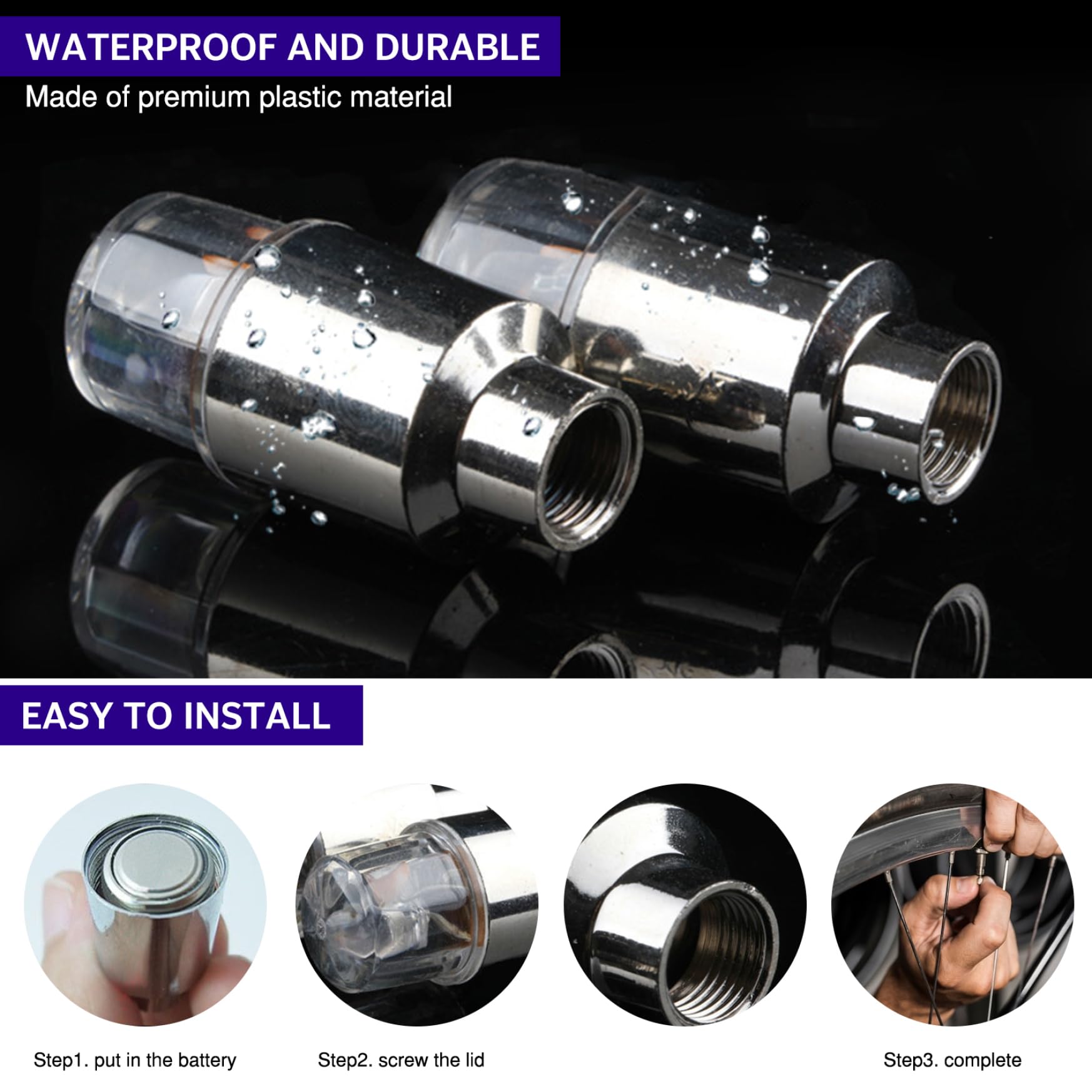 7 couleurs dans 1 feux de roue à vélo vifs: nos feux de pneus de vélo 4pcs vous feront toujours être au centre de l'obscurité, peu importe où vous êtes., ., 7 couleurs Lumière vous rend plus cool et attrayant. Mairie de ~ VÉLO : SÉCURITÉ ROUTIÈRE ABRI CYCLES SÉCURISÉ GRENOBLE - Un abri vélos haute sécurité Transmittance à haute lumière pour améliorer votre sécurité: le voyant de roue à vélo flash LED utilise un matériau de perméabilité élevé, une bonne transmittance de la lumière de la tête de lampe, la lumière du capuchon de soupape peut augmenter la visibilité nocturne et mauvais temps dans toutes les directions pour rendre vous et vos proches plus sûrs, et apporter. Applications larges et effet frais: nos feux de pneus de vélo conviennent aux voitures, motos, voitures électriques, vélos., ., Lorsque votre roue commence à se déplacer, elle clignote automatiquement et formant une ouverture de lumière qui rend votre voiture / moto / vélo est magnifique et cool. VINGVO porte-vélos de garage Porte-vélos mural en acier à haute teneur... Facile à installer: aucun outil n'est nécessaire, quelques secondes à installer ou à supprimer., ., Installe sur des vannes à tige d'air de pneus standard de voitures, de motos ou de vélos., ., Veuillez dévisser la lampe avant utilisation et retirer la feuille d'isolation moyenne., ., Si cela ne fonctionne toujours pas, vous devez les mettre sur la tige de la valve et la conduite, cela émettra une aura fascinante avec la vibration des pneus. Aucun outil supplémentaire requis!, ., Pas adapté aux rayons larges ou clairsemés., ., Laux de roue à vélo., ., -Color: Silver., ., -Material: Alloy., ., -Size: environ 3,6x1,6 cm / 1., 42x0,63 pouces., ., -Powed par: 3 batteries de bouton (incluses)., ., -Battery Temps utilisé: 1-3 mois., ., Remarque: Mesure manuelle, veuillez laisser de légères erreurs sur la taille., ., Les couleurs peuvent exister une légère différence en raison de différents écrans., ., Package comprenant: 8 * Laux de roue à vélo Lumières Valve Pneu 8 Pièces Lot De 8 Lumières De Roue De Vélo étanches à Haute Transmission De Lumière Clignotante Pour Moto, Voiture, Vélo, Accessoires Verts Feux Valve Vélo 7 Couleurs