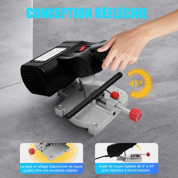 Adaptée au bois, à la pierre, au métal et à bien d'autres matériaux, elle répond à divers besoins de coupe. La mini scie à découper à onglet peut être utilisée pour couper rapidement des tuyaux en acier sans couture, des tuyaux de fer, de l'aluminium, des tiges de cuivre, du zinc Avec notre scie sauteuse, ces préoccupations n'ont plus lieu d'être. Les mini scie circulaire poignées ergonomiques et les outils de serrage améliorent la précision de coupe. 【Sécurité élevée】 : Les évents de dissipation de chaleur sur le corps assurent un refroidissement rapide pour un fonctionnement stable ; les interrupteurs de fin de course empêchent tout contact accidentel ; les protections de coupe réduisent le risque de coupures ; en outre, la protection contre les surcharges et la surchauffe renforce encore la sécurité de fonctionnement. 【Haute performance】 : Mini scie circulaire alimenté par un moteur robuste de 90 W atteignant 6000 tr/min, cet outil offre une puissance de coupe suffisante pour accomplir efficacement les tâches. Spécifications Couleur : Argent+Noir Matière : alliage d'aluminium, acier rapide, acier inoxydable : Alliage d'aluminium, acier rapide et fonte brute Type de montage : Table Assemblage requis : Oui Source d'alimentation : Cordon électrique Puissance : 90W Voltage : 220VAC, 50Hz, 0., 5AMP Vitesse maximale : 6000RPM Modèle d'adaptateur : DCSP2521000 Entrée : AC100-240V, 50/60Hz Sortie : DC25., 2V, 1., 0A DC25., 2V, 1., 0A Angle de coupe : 0-45° réglable Porte-outil : 3/8'' Épaisseur de coupe pour les métaux tendres : Max., 10mm/0., 39in Non-métaux : Max. Mini scie à table, petite scie électrique de bureau, scie de bureau 【Aide à la coupe】 : Scie onglet équipée d'une lame HSS tranchante, cette scie circulaire coupe les matériaux non métalliques jusqu'à une profondeur de 1,2 cm, les métaux tendres jusqu'à une profondeur de 1 cm et les métaux durs jusqu'à une profondeur de 0,4 cm. Dotée de matériaux de haute qualité et d'un moteur robuste, notre scie sauteuse est un scie à onglet en acier conçu avec précision pour optimiser l'efficacité de la coupe et répondre aux besoins spécifiques d'un large éventail de matériaux. 【Durable】 : Cette mini scie à onglets est fabriquée à partir d'un alliage d'aluminium et de fonte de première qualité, offrant une grande dureté, une résistance à la corrosion et des propriétés antirouille. Outil indispensable pour réaliser des coupes d'angles, la scie à onglets permet de couper plinthes, lambris et tasseaux. Qu'il s'agisse de coupes d'angles à 45 degrés ou à 90 degrés, ce modèle de scie vous accompagne idéalement dans vos travaux en tant que professionnel ou amateur Mini Scie à Onglets Mini Scie à Onglet électrique 90 W 6000 RPM 0-45° Scie à Onglet De Table Pour Couper Le Bois Et Le Métal Mini Scie Radiale Portable 12 mm Profondeur de coupe pour les métaux durs : 4mm/0., 16in Taille du produit : 25*14*15cm/9., 84*5., 51*5., 91in Taille de l'emballage : 25*16*11cm/9., 84*6., 3*4., 33in Poids brut : 1., 75kg/3., 86lbs Poids net : 1., 5kg/3., 3lbs Le paquet comprend 1* Scie sauteuse 1* Outil de serrage 1* Manuel d'instruction en anglais Tous les accessoires pour l'installation