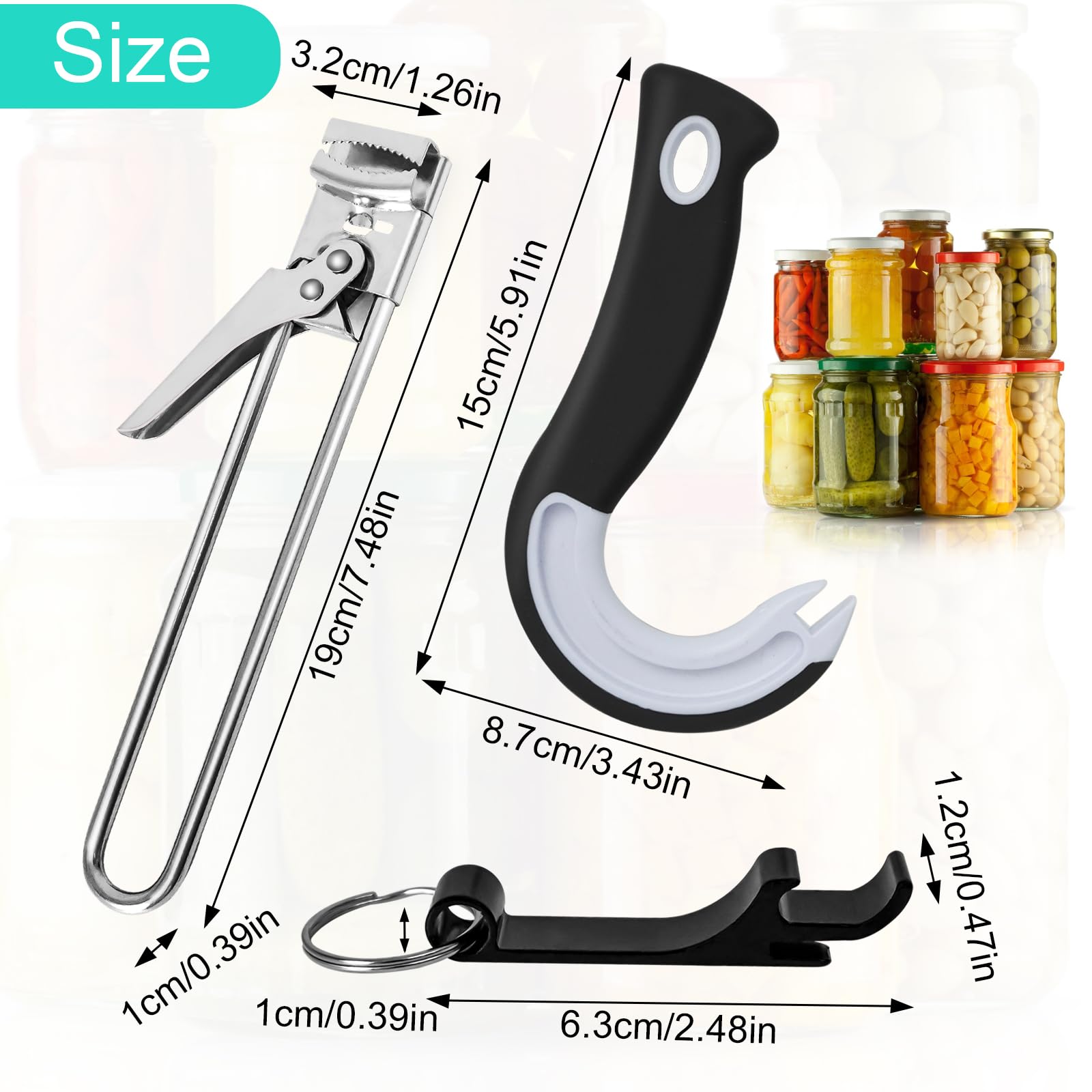 Spécifications Nom : Ouvre Bocal Manuel Couleur : Argent, Noir, Blanc Matériau : Acier Inoxydable, Alliage D'aluminium Le Paquet Contient 1 * Ouvre Bocal Manuel 1 * Ouvre-boîtes à Crochets en Forme de J 1 * Decapsuleur Porte Clef Fonctions 1., Vous recevrez trois produits, 1 ouvre bocal manuel, 1 ouvre-boîtes à crochets en forme de J et 1 decapsuleur porte clef, qui répondent à tous les besoins d'ouverture de canettes dans la vie quotidienne., 2., La ouvre bocal réglable du décapsuleur en acier inoxydable est 6 mm plus épaisse et plus durable., 3., Nos decapsuleur porte clef sont disponibles dans des couleurs aléatoires, fabriqués en alliage d'aluminium de haute qualité, petits et beaux, et peuvent être utilisés comme décoration de porte-clés. L'ouvre-boîtes à crochets en forme de J avec languette de traction convient aux récipients avec languettes de traction et est facile à utiliser. Le porte clé décapsuleur convient aux capsules de bouteilles de bière et est facile à transporter Non endommagé pendant l'utilisation. [Économie D'effort & Pratique] Notre Ouvre-Boîtes à Crochets En Forme De Jest conçu pour faciliter l'ouverture des canettes. L'ouvre-boîtes à crochets en forme de J avec languette de traction convient aux récipients avec languettes de traction et est facile à utiliser. Ouvre-bocal Réglable Ouvre Bocal Manuel 3 Pièces Ouvre Bocal Réglabl|Ouvre-Boîtes à Crochets En Forme De J| Pour Les Personnes Âgées Mains, Les Personnes Souffrant D'Arthrite Porte Clef Décapsuleur [Grande Distance Réglable] L'[ouvre-couvercle de pot à vis] a une conception réglable et peut être ajusté à la taille du bouchon de la bouteille. Il dispose d'un crochet ergonomique, fonctionne sur le principe du levier, peut ouvrir les canettes rapidement et permet d'économiser du temps et des efforts ! [Conception Portable] Compact et léger, facile à placer dans le tiroir de la cuisine ou à accrocher à un crochet pour un accès rapide, afin qu'il ne prenne pas trop de place dans la cuisine. Il peut facilement ouvrir les bouchons de bouteilles d'un diamètre compris entre 0,3 cm et 14 cm. Ouvre-bocal manuel orange - Le Parfait® ~ Les Essentiels - LE PARFAIT Les engrenages uniformément espacés de l'ouvre-bouchon réglable mordent fermement le bouchon de la bouteille sans glisser. Ouvre-boites multifonctions pour vous aider au quotidien. Pour ouvrir les boîtes anneaux, les bocaux vissés et sertis en toute sécurité sans besoin de...