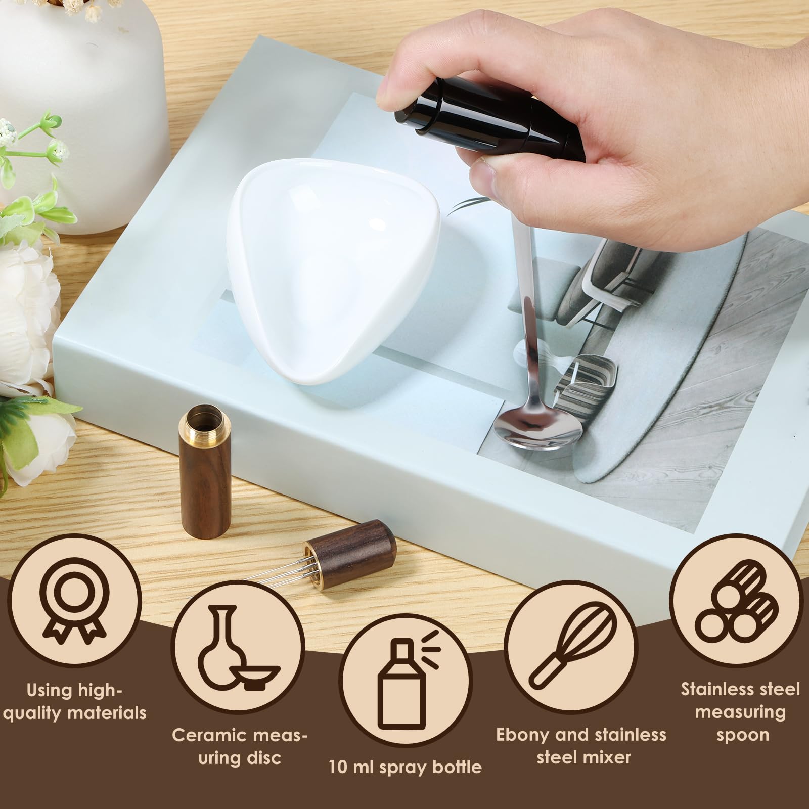 Informations sur la taille: Le bol de grains de café mesure 10 cm de long et 8 cm de large;Le flacon pulvérisateur noir mesure 9,7 cm de long et 2,3 cm de large;La cuillère...