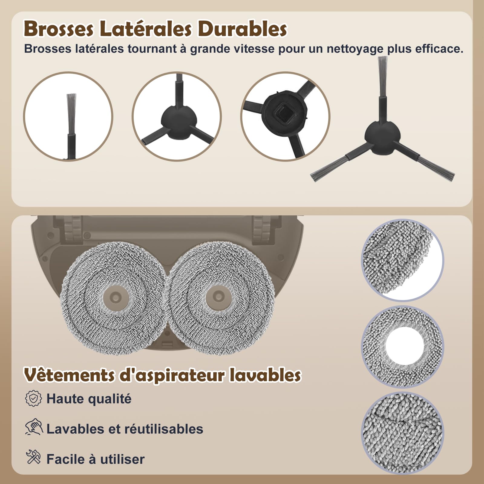 Paquet de Valeur - Chaque kit de remplacement pour Dreamebot L10s Pro Ultra Heat/ L10s Ultra Gen 2 est dans un ensemble, y compris 1 brosses en caoutchouc, 6 sacs à poussière, 6 coussinets de nettoyage, 2 filtres, 4 pinceaux latéraux, 1 outil de nettoyage Durable et ajustement parfait., Facile à remplacer. Dreame Matrix10 Ultra Kit D'accessoires Pour Dreame L10s Pro Ultra Heat/L10s Ultra Gen 2/X30 Ultra /Mova E30 Ultra, Saprdii 6 Sacs à Poussière, 6 Serpillères, 1 Brosse Principale, 2 Filtres, 6 Brosses Latérales Brosses Filtres Tampons Dreame Gardez votre robot aspirateur au meilleur niveau avec le kit de pièces de rechange d'origine dreame L10s PRO Ultra/X30 Ultra/L10s Ultra/L10s Ultra/Gen2/L40 UltraAE/MOVA E30., Ce kit complet pratique contient toutes les pièces d'usure importantes nécessaires pour une performance de nettoyage élevée et constante. Accessoires dreame d'origine Performances de nettoyage optimales : sur sols durs et tapis Compatibilité parfaite : Ce kit complet de pièces de rechange est spécialement conçu pour les aspirateurs robots Dreame L10s Ultra, L10 Ultra et L10 Prime, garantissant une compatibilité parfaite et des performances optimales.Efficacité de nettoyage améliorée : Le kit comprend des composants de haute qualité tels qu'une brosse principale, des filtres, des tampons de nettoyage, des... Kit d'accessoires pour Dreame L10s Pro Ultra Heat/X30 Ultra/L10s Améliore la puissance d'aspiration et la norme d'hygiène. Idéal pour un entretien régulier /X30 Ultra/L10s Ultra Gen2/L40 Ultra AE/MOVA E30 puissant, hygiénique et fiable – Idéal pour un entretien régulier et une maison toujours propre.