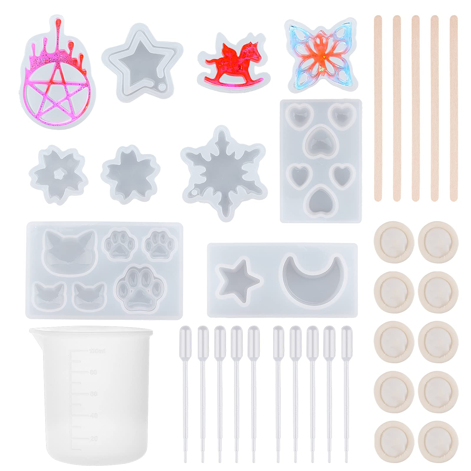 TAVADA Moulle Silicone Resine Epoxy,Kit Resine Epoxy Complet,Moule Resine Epoxy,Carres,Ronds Et Cylindrique Pour Collier Boucle D'oreille,Bricolage Bijoux,Pendentif,Porte-Clés,etc