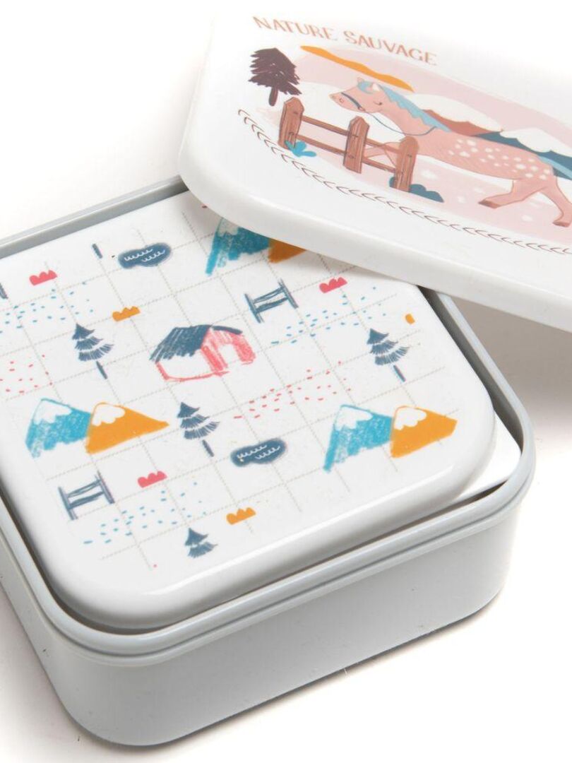 Parfait pour prendre le goûter à l’école, à la maison ou en balade. Cet ensemble de trois boîtes à goûter est très pratique à ranger, et les couvercles antifuite sont faciles à ouvrir pour les petites mains d’enfant. Matériaux: fond: 100% PP - couvercle: 100% LDPE Lunchbox, Happy Prints | Lässig Recommandation d'âge: 3y+ Lot de 3 boîtes à goûter Mr. Triceratops - Trixie Boîte Pique-nique Boîtes À Goûter À Clip - Mr. Dino - Trixie - FOX & Cie Lot De 3 Boîtes Avec cet ensemble de trois boîtes à goûter, les en-cas deviennent un vrai moment de plaisir. Faciles à ouvrir pour les petites mains, elles sont parfaites pour emporter fruits, biscuits ou sandwichs à l'école, en sortie ou à la maison