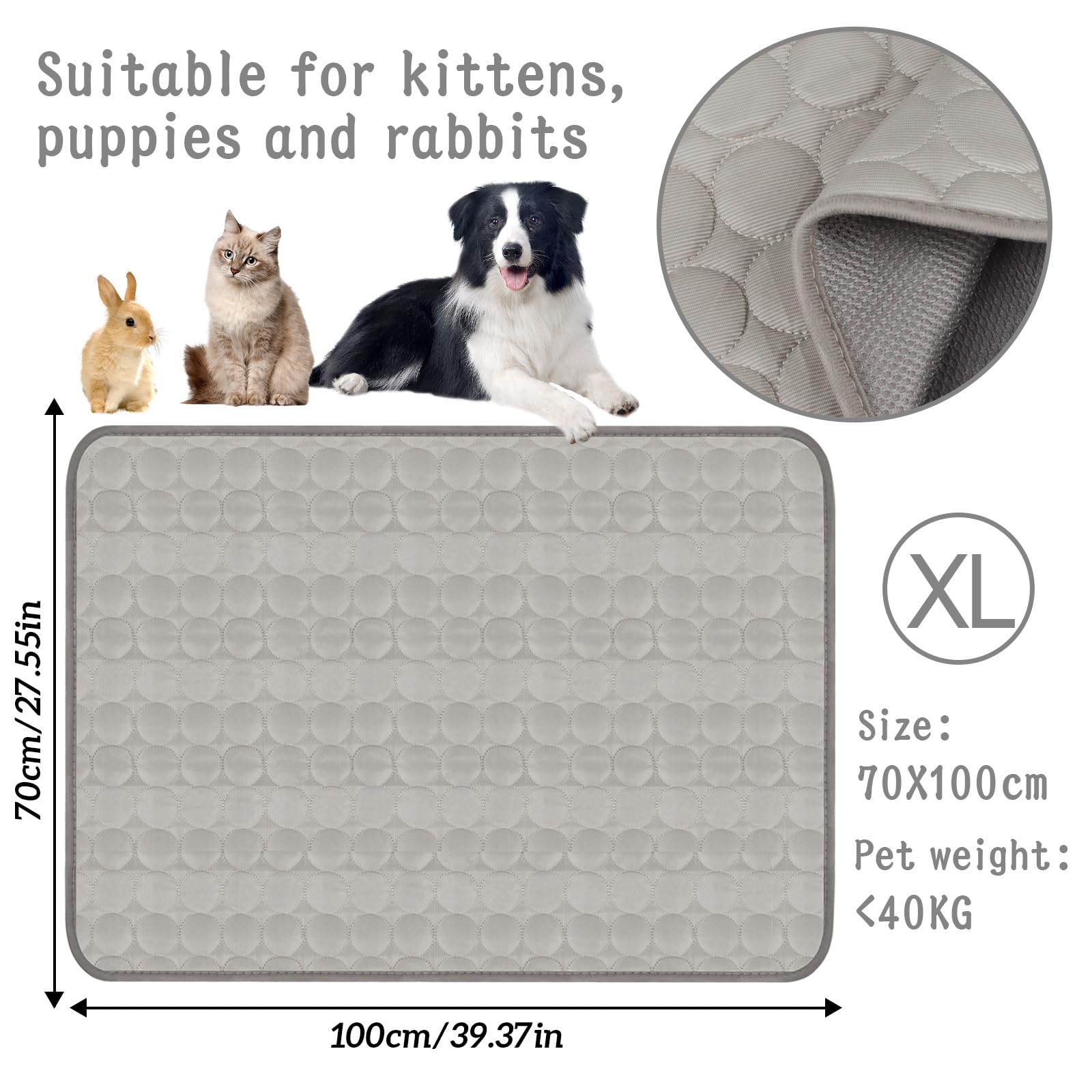peut également être utilisé comme coussin de refroidissement pour animaux de compagnie, ainsi que comme oreiller, coussin de siège ou coussin de refroidissement pour ordinateur. laissez votre animal ne ressentir plus la chaleur estivale 3., Tapis été chien pas seulement pour les lits pour chiens, les caisses, les chenils, les canapés, les sols ou les sièges arrière de voiture. gardez votre animal au sec et confortable. il ne prend pas de place et est pratique pour le stockage et les voyages. il peut rapidement refroidir et vous garder au frais par temps chaud. Grâce à sa technologie innovante, ce tapis absorbe la chaleur corporelle de votre animal pour la dissiper dans l'air ambiant. Confortable et facile à entretenir... Tapis Rafraîchissant Pour Chien Durable Tapis De Refroidissement En Gel Glace Pour Chiens Et Chats 50 90cm parfait pour placer dans les voitures, les trous de lit pour animaux de compagnie, les sols ou les meubles. avec ce coussin rafraîchissant pour chien, vous ne verrez plus jamais votre chien haleter et se débattre lors d'une chaude journée d'été. il est facile à nettoyer, il suffit de le rincer à l'eau ou de le mettre dans la machine à laver. 🧸【Portable et Pliable】Tapis rafraichissant léger et doux en tissu, il est facile à plier et à ranger lorsqu'il n'est pas utilisé. Tapis Auto-refroidissant été Tapis Refrigerant Chien 100 X 70cm Tapis Rafraîchissant Pour Tapis Refrigerant Pour Chat EN STOCK : SWANEW Tapis Rafraîchissant Pour Chien Durable Tapis De Refroidissement En Gel Glacé Pour Chiens Et Chats 70x100CM, MMRD B 1 PS7008 pas cher. Livraison rapide partout en France 💤 【Tapis Auto-Refroidissant】Tapis rafraîchissant pour chien et chat refroidit par contact, il vous suffit de le placer sur le sol ou sur le canapé et de laisser votre animal se sentir rafraîchi dessus. il est relativement doux et peut être utilisé sur le sol/canapé/lit/nid, etc. il absorbe la température corporelle de votre animal, maintient une température confortable et procure à votre animal une sensation de fraîcheur naturelle. il convient très bien aux matelas de couchage pour animaux de compagnie en été., 2., Tapis rafraichissant chat lavable il est fin, avec un côté en tissu rafraîchissant et un côté en tissu maillé. 🧸【Matériau de Haute Qualité】Tapis refroidissement chien fabriqué en tissu auto-refroidissant, doux, confortable, rafraîchissant, léger et fin, avec un tissu rafraîchissant d'un côté et un tissu en maille de l'autre côté. peut être utilisé sur les lits, les tapis de chenil, les housses de siège de voiture, les pelouses, les plages, etc.
