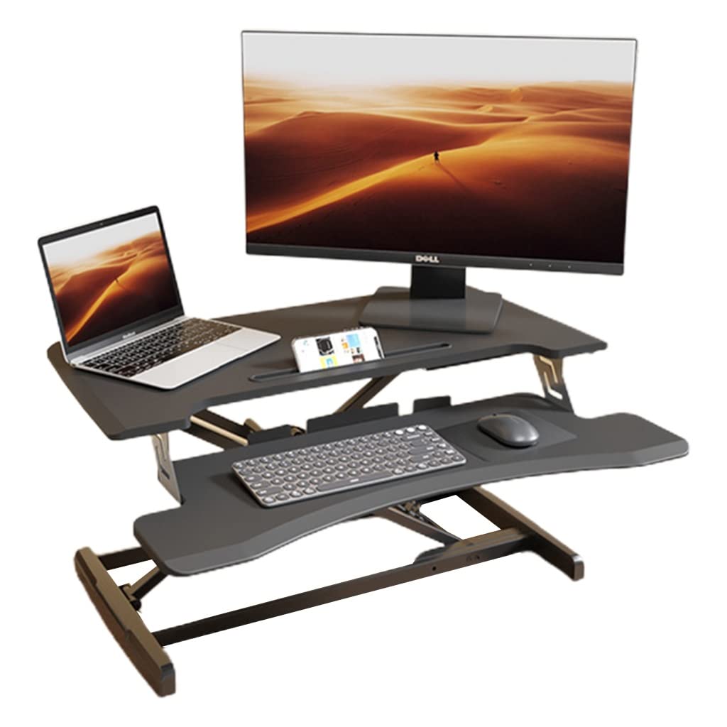 Poste De Travail Réglable En Hauteur VIVO DESK-V000KN Convertisseur De De 81,3 Cm, Rehausseur Réglable En Hauteur, Double écran Et Station De Travail Pour Ordinateur Portable Avec Large Plateau Pour Clavier, Marron Placez-le sur votre bureau existant, fixez l'étagère du clavier et commencez à organiser votre lieu de travail. Ce bureau assis debout offre un plateau bureau spacieux pour deux moniteurs et un clavier de bureau portable. Parfait pour les environnements professionnels, le télétravail et les postes de travail ergonomiques Convertisseur bureau assis-debout - Le Shop du Télétravailleur 【Construction robuste】 Avec sa base lourde en acier de haute qualité, ce convertisseur de bureau à siège debout est robuste et stable et peut porter jusqu'à 17 kg (37,5 lb), de sorte qu'il a une longue durée de vie. Vous pouvez également supprimer l'étagère du clavier pour utiliser la pièce jointe du bureau TechOrbits OF-S06-2 Convertisseur de bureau-37 po réglable en hauteur Le réglage de la hauteur facilite la création d'une position de travail plus ergonomique Notre convertisseur de table de siège est équipé d'un mécanisme de levage pneumatique avancé et offre ainsi beaucoup d'espace pour vos ustensiles de bureau. Spécification:Taille du produit:Taille de bureau: env. Le niveau supérieur (37 '' l x 15,75 '' b) offre une grande zone de travail et peut absorber 2 moniteurs d'ordinateur, tandis que le niveau inférieur (29,53 'L x 11,8' b) offre un espace pour un clavier et des papiers standard 94 x 40 cmHauteur de levage: 15–48 cmCouleur: noirCharge maximale: env. 【Réglable de hauteur】 La table d'ordinateur et l'étagère du clavier peuvent être augmentées simultanément à l'aide d'un ressort pneumatique (zone d'altitude: 5,91 '' à 18,9 ''). Le moyeu vertical et le cadre en acier en forme de X assurent une stabilité extrêmement élevée et un espace plus petit sur le bureau Trouvez votre taille corporelle parfaite pour réduire les plaintes physiques en vous asseyant plus longtemps.