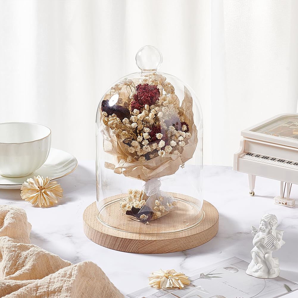 Utilisation multifonctionnelle:Placez des compositions florales en soie, succulentes, bougies piliers, plantes en pot, figurines modèles, montres de poche, petits desserts, bijoux, guirlandes lumineuses, objets de collection, souvenirs et plus. Matériel:Le couvercle en verre est clair et transparent, qui peut parfaitement afficher la collection, Dôme avec cloche, belle et plus agréable à tenir, durable et très robuste. Design élégant:Le dôme en verre de la cloche avec ses poignées rondes délicates, présentoir parfait pour vos articles préférés. Vitrine Pour Figurines BENECREAT Cloche De Présentation En Verre De 12x16cm Dôme Dôme De Présentation Décoration Design élégant:Le dôme en verre de la cloche avec ses poignées rondes délicates, présentoir parfait pour vos articles préférés Nos cloches en verre sont le choix idéal pour les cadeaux et les présentations. Fabriquées à la main avec du verre borosilicaté de haute qualité et personnalisables à votre guise BENECREAT Cloche de cúpula de vidro de 17 x 12 cm com base de madeira, frasco rústico de sino