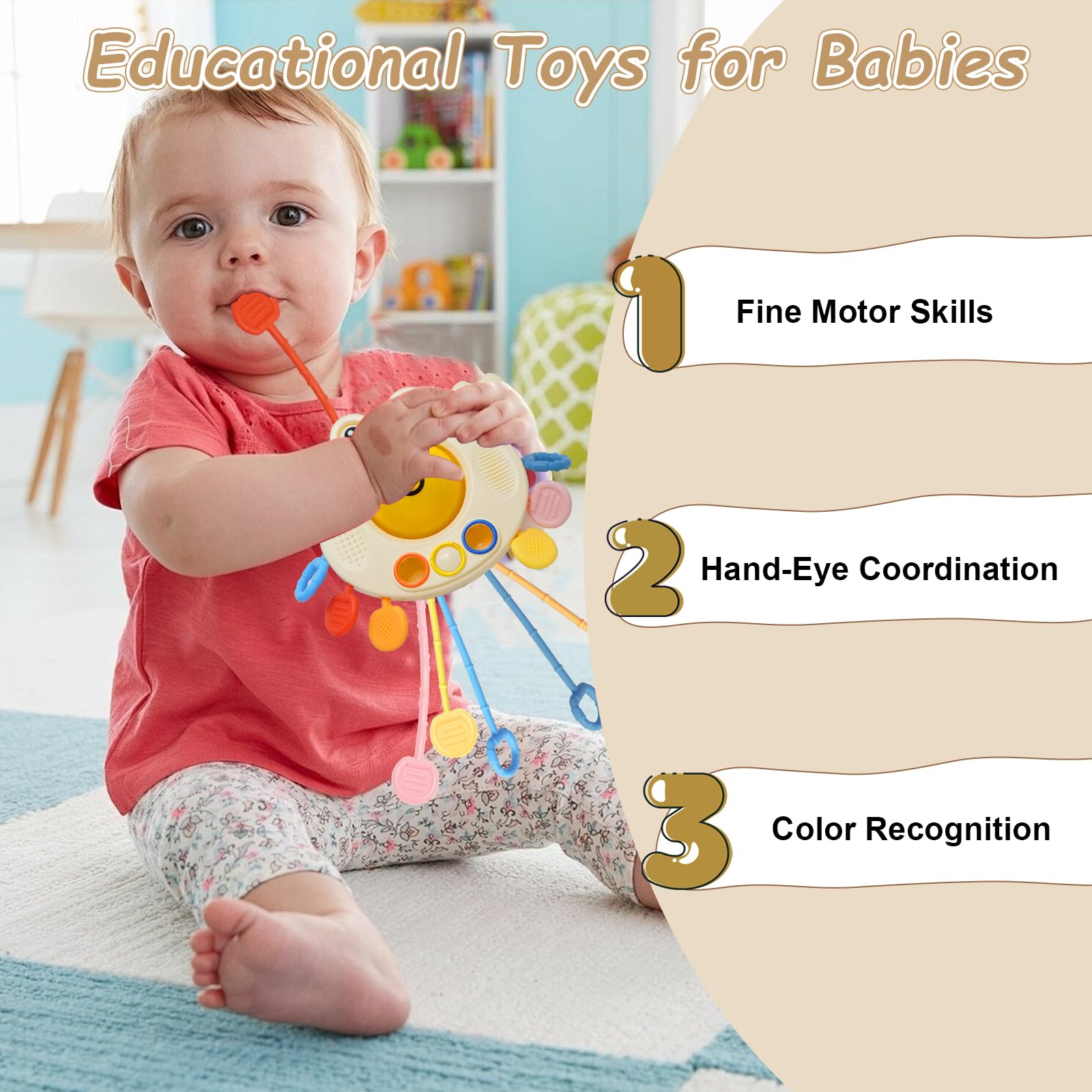 Peut être nettoyé au lave-vaisselle. Quel jouet sensoriel pour bébé ? : que faut-il choisir Appuyer sur ces boutons souples favorise le développement des organes sensoriels du bébé. Cadeau meilleur pour bébé: Les jouets éducatif pour les enfants âgés de 1 an constituent un cadeau idéal pour votre bébé. Sa taille modérée le rend facile à transporter, ce qui le rend idéal pour les voyages en voiture, en train ou en avion. Assurez-vous que nos jouets ne blessent pas vos enfants. Jouet pour le développement précoce et l'activité : En tirant sur la corde, les tout-petits peuvent développer leurs capacités motrices, leur exploration sensorielle, leur motricité fine et leur coordination œil-main. Dans cette collection, vous retrouverez du matériel Montessori ainsi que des jouets pour enfants de 1 an qui vont transformer votre maison en un environnement riche en apprentissage et qui vont également respecter le rythme et le besoin spécifique de votre bout de chou Appuyez doucement sur ce bouton et faites-le glisser d'un trou à l'autre pour entraîner la souplesse et la coordination œil-main de votre bébé. Montessori Jouets pour enfants de 1 an - Jouets sensoriels KETIEE pour bébés de 12 à 18 Jouets Montessori pour Bébés 6-12 Mois, Jouets d'Activité Multi-Sensoriels pour Enfant de 1 An, Jouets de Dentition à Cordon pour Bébés 12-18 Mois, Jouets de Voyage pour Tout-Petits Siège Auto Chaise Haute Le jouet de voyage pour les tout-petits a été certifié EN71 et CE dans l'UE. Le code de couleurs vives contribue au développement de la vision de l'enfant et favorise également le développement de ses organes sensoriels. Les deux côtés de l'ovni sont antidérapants, ce qui permet aux bébés de s'y agripper facilement. Matériau 100 % sûr: Ce jouet de dentitioninteractif avec cordon de serrage est fabriqué en silicone alimentaire et en ABS. Cela signifie qu'il est fabriqué à partir de matériaux 100 % sûrs, non toxiques, sans BPA ni phtalates.