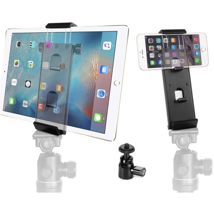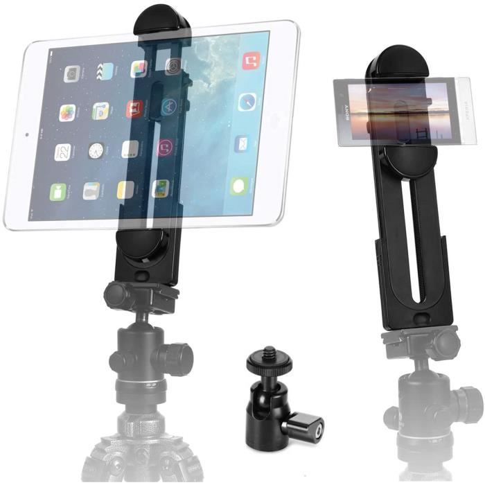 Outils pratiques Les deux côtés conservent de l'espace pour connecter n'importe quel accessoire lors de ce trépied, basculant facilement entre les modes paysage et Haut format, idéal, la diffusion en direct, l'apprentissage à distance et l'enregistrement vidéo. Stabilité sécurité De puissants bras élastiques et un grand menton garantissent la stabilité de votre appareil, et l'iPad est doté d'un tapis antidérapant qui protège votre appareil des rayures et des glissements, idéal pour l'enregistrement vidéo, l'apprentissage à distance et bien plus encore. Support Trépied pour iPad Pro, iPad Air, iPad Mini, Tablettes de 4,7 à 12,9". 4,4 étoile(s) sur 5 343. 1 offre à partir de 14,99 Adaptateur de trépied pour iPad et téléphone avec rotule, support de trépied pour iPad, support rotatif à 360° pour tablette iPad Pro 12.9, iPad Air... Stable et agrandi : prend en charge les angles de prise de vue horizontaux et verticaux, rotation à 360 degrés pour l'utilisation, la largeur de la pince s'étend jusqu'à 12,9 pouces, convient à une large gamme de tablettes en cours d'utilisation. Adaptateur Montage Universel Pour Trépied Tablette, Compatible Avec Les Verrouillage rapide : support universel pour tablette, réglage rapide de la largeur de serrage, facile à verrouiller, pas peur de faire tomber votre tablette/iPad. Convient : convient à la rotule de 17 mm, adapté au support de tuyau en direct et au support de voiture, un accessoire indispensable. Support Tablette Réglable MECO Trépied Pour IPad Support Pour Tablette Trepied Réglable En Hauteur Rotatif à 360 Support Tablette Trepied Compatibilité Fonctionne avec tous les écrans fonctionne avec les téléphones et les tablettes, y compris iPad pro, iPad air, iPad Mini, Surface Pro, Samsung, iPhone, Huawei, etc. Léger petit plus double pull flat Clip a noir S'adapte à toutes les tailles d'écran de la plupart des tablettes et des téléphones, reste horizontal et vertical, s'assure que votre appareil reste stable pour protéger votre appareil contre les rayures et les chutes, est l'accessoire parfait pour votre trépied. Facile à utiliser L'installation ne prend que quelques secondes, aucun outil n'est nécessaire, il suffit de fixer ce support de tablette sur un trépied qui Redimensionne automatiquement la tablette et l'adaptateur pour installer et désinstaller le support de tablette est rapide et facile.