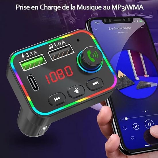 Double Port de Charge Ultra: Équipé d’un port PD 20W, QC3., 0 et USB, ce chargeur allume cigare usb rapide offre. Kit de chargeur de voiture Portable PD30W avec pour transmetteur FM Bluetooth connexion USB allume-cigare stéréo lecteur Audio MP3/FLAC Ce transmetteur FM Bluetooth 5.0 PD 30W QC3.0 est équipé d'un port USB-C et prend en charge la charge rapide PD 3.0, avec une sortie maximale de 30 W. Ce chargeur de voiture chargera rapidement votre appareil pendant que vous conduisez Charge Rapide et Performante Avec une puissance cet adaptateur allume-cigare intègre 3 ports : un port PD 20W, un port QC3., 0 et USB. Son installation plug-and-play le rend accessible à tous les conducteurs, sans configuration complexe. Que ce soit votre smartphone, tablette, GPS ou montre connectée, vos équipements restent toujours prêts à l’emploi. Pour une touche supplémentaire, les 7 couleurs LED apportent une atmosphère agréable et permettent de repérer facilement l’appareil de nuit. Ce chargeur allume cigare usb c intègre un micro haute précision pour capter la voix. Améliorez votre expérience de conduite avec ce transmetteur FM Bluetooth 5., 3 pour voiture, une solution polyvalente qui combine musique de qualité, appels mains libres et charge rapide dans un seul appareil compact et pratique. Transmetteur Fm Bluetooth Voiture Avec Charge Rapide Usb 3.1a Et Accessoire Voiture Interieur Sécurité et Simplicité au Volant Passez vos appels en toute sécurité grâce au mode mains libres. Lecteur de Carte TF,USB-C vers TF, Adaptateur de mémoire TF de Type C OTG pour PC,ordinateur... Le microphone haute sensibilité capture votre voix avec précision, tandis que la compatibilité avec vous permet de donner des commandes vocales sans quitter la route des yeux. Appels Mains Libres et Assistant Vocal: Appuyez sur un bouton pour répondre ou rejeter un appel en toute sécurité. Que ce soit pour écouter de la musique en streaming, lire vos morceaux stockés sur une clé USB ou une carte TF, vous profitez toujours d’une transmission fluide et sans interruption. Une simple pression sur un bouton suffit pour décrocher, raccrocher ou rejeter un appel. La prise allume cigare usb c permet de recharger simultanément smartphones, tablettes et montres connectées. Les 7 lumières LED colorées rendent le transmetteur fm bluetooth plus visible la nuit, pour une conduite agréable et sécurisée. Compatibilité Étendue et Utilisation Universelle Conçu pour s’adapter à la majorité des véhicules (12V-24V), ce transmetteur FM est compatible avec la plupart des appareils Bluetooth, qu’il s’agisse de téléphones, tablettes ou montres connectées. Connexion Bluetooth Avancée Grâce à la technologie Bluetooth 5., 3, bénéficiez d’une connexion plus rapide et stable entre vos appareils et le transmetteur.