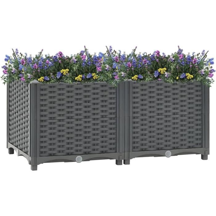 Ces jardinières de jardin sont un excellent choix pour contenir vos plantes ou fleurs préférées et les ajouter à vos jardins, balcons ou patios comme décoration Multifonctionnelle : cette jardinière est un excellent choix pour les amateurs de bricolage pour décorer votre jardin et tout espace de vie extérieur., Couleur : noir, Matériau : acier Utilisation polyvalente]La jardinière surélevée en bois mesure 228 x 62 x 25 cm et la capacité au sol est de 260 cm3. Elle convient à diverses occasions, telles que le jardin, la terrasse, la pelouse, la serre, apportant vie à votre espace extérieur avec verdure et beauté EN STOCK : Lit surélevé de jardin pas cher. Grand choix, promos permanentes et livraison rapide partout en France. Paiement sécurisé Matériau robuste et durable : fabriquée en acier, cette jardinière est résistante à la rouille et à l'usure pour une utilisation extérieure à long terme Lit surélevé de jardin doublure 120x60x25 cm bois massif sapin - Lit Elle assure également la stabilité et empêche le basculement Grand espace : la jardinière est suffisamment profonde et large pour contenir une grande quantité de terre et offre suffisamment d'espace pour vos plantes, légumes, herbes et fleurs Bac à Fleurs Résistant Rouille Lot De 2 Jardinières Surélevée à Arrosage Automatique, Lit De Jardin Sureleve Avec Pieds Amovibles Trou De Drainage Bacs A Fleurs Blanc Casse 92624785 Bac à Fleurs Extérieur Couleur : noir, Matériau : acier, Dimensions totales : 40 x 40 x 40 cm (L x I x H), Hauteur du fond à partir du sol : 4 cm, Avec fond, Assemblage requis : oui, La livraison contient : 2 x jardinière Elle assure également la stabilité et empêche le basculement. Multifonctionnelle : la jardinière sans trous de drainage peut être posée sur n'importe quelle surface sans peur de l'inondation, et accueillir vos plantes ou fleurs préférées pour décorer votre espace.