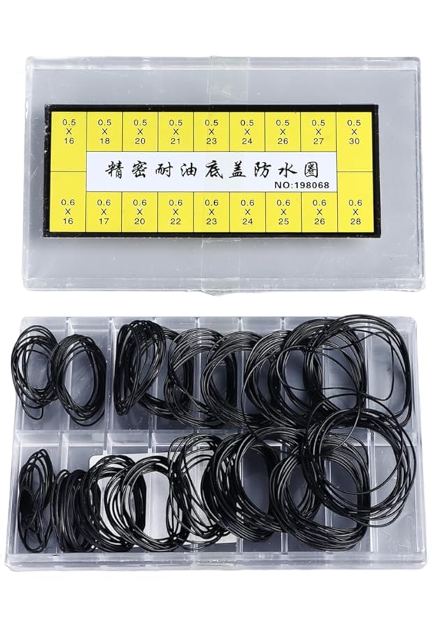 1 ensemble de joints toriques pour montre, pour ... – Grandado Joints Remplacement Bracelet Montre Complets – Joints Toriques Étanches & Outils De Remplacement Batterie – Boîte En Caoutchouc, Rondelle, Couronne – Sac Pratique & Ensembles Pour Travail Des Horlogers Kit Réparation Montre Idéal pour les activités en plein air ou les environnements humides. Votre Montre Toujours Au Top: Avec ces joints toriques en caoutchouc, votre montre reste étanche et prête à affronter toutes les aventures. Kit de Réparation pour Passionnés: Ce kit de 500 pièces est pour les amateurs et les professionnels qui souhaitent entretenir leurs montres avec des joints toriques de haute qualité. Description de Kit de réparation de joints toriques en caoutchouc pour fond de montre, 950 pièces de 0,5 mm, tailles 12 à 30 mm Caoutchouc de haute qualité Transport Facile et Organisé: Grâce à la boîte de stockage étiquetée, vos joints toriques sont toujours à portée de main, que vous soyez à la maison ou en déplacement. Forme compacte : compacte et pratique, facile à ranger et à transporter, et pratique à transporter en même temps.Largement applicable : l'un des outils professionnels de réparation de montres, adapté aux réparateurs et aux amateurs.Satisfaire divers besoins : il existe de nombreuses tailles, adaptées aux besoins de différentes tailles.Matériau plastique de haute qualité : prolonge... Pratique et efficace pour les réparations rapides. Idéal pour les amateurs de montres qui cherchent une solution durable et efficace.