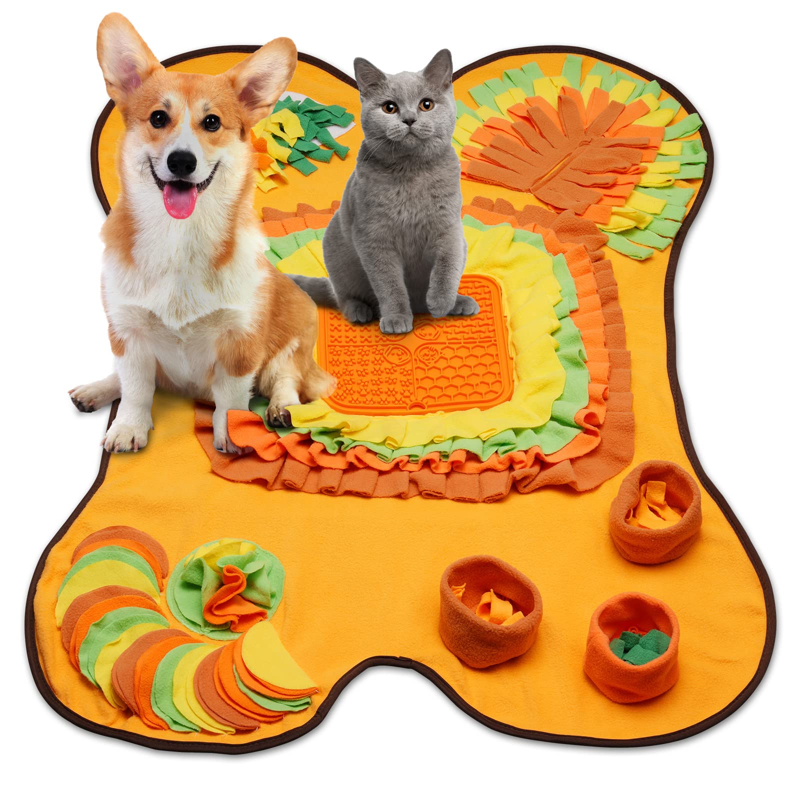 Description du produit MATÉRIAU DOUX : contrairement à d'autres matériaux de mauvaise qualité, la surface de ce tapis à renifler pour chien est entièrement fabriquée en tissu doux, assez doux pour protéger au mieux la langue de votre chien. jouets pour chiens Antidérapant dessous avec points de gel de silice antidérapants, la couverture à renifler ne fonctionne pas facilement n'importe où, vous pouvez fixer le cordon de serrage aux pieds de la table pour rendre la gamelle anti-boucle très ferme, protéger votre bois dur, tapis et autres sols Il peut être lavé à la main ou en machine et est facile à nettoyer. Amusant tout en empêchant les chiens de s'étouffer lorsqu'ils mangent trop vite. Si votre animal de compagnie le mord, ils lui disent « non » et lui indiquent de l'utiliser correctement. Tapis Doux Langue Chien Sécurité ZMUBB Tapis à Renifler Pour Animaux De Compagnie - Tapis D'alimentation Jouet Chien Mental Stimulation MATÉRIAU DOUX : contrairement à d'autres matériaux de mauvaise qualité, la surface de ce tapis à renifler pour chien est entièrement fabriquée en tissu doux, assez doux pour protéger au mieux la langue de votre chien. TRAITEMENT ANTIDÉRAPANT : le tapis à renifler a un traitement antidérapant qui n'entraîne pas le glissement du tapis à renifler sur le sol à cause de la nourriture du chien. Conseils : évitez que votre chien ne traîne le tapis à renifler. Tapis à renifler chien : la taille du tapis à renifler est de 60 x 60 cm. Tapis à renifler pour animaux - VGEBY - Modèle éducatif - 69 x 48 cm Ce tapis à renifler convient aux chiens de différentes tailles. Idéal pour aiguiser sa dextérité et éveiller sa curiosité. Ce tapis à renifler stimule la concentration de votre petit compagnon et l'aide à manger moins vite. En effet, si votre toutou ou votre matou est un petit glouton, cet accessoire lui apprendra à manger plus lentement