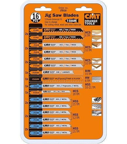 Le changement de lame de scie : bien utiliser les scies sauteuses Pack de 3 lames de scie sauteuse spéciales Fibres et plâtre CMT Lames pour scies sauteuses Pour réaliser des coupes droites dans le bois avec clous/métal, les panneaux agglomérés et stratifiés (<60mm), la tôle, les profilés en aluminium (3-18 mm), le plastique renforcé de fibres de verre/résine époxydique Lames Scie Sauteuse Jeu De 5 Lames à Métal En HSS 13,2cm T318A Pour Scie Sauteuse SOMAFIX Lames Pour Scie Sauteuse Pour réaliser des coupes droites dans le bois avec clous/métal, les panneaux agglomérés et stratifiés (<60mm), la tôle, les profilés en aluminium (3-18 mm), le plastique renforcé de fibres de verre/résine époxydique.