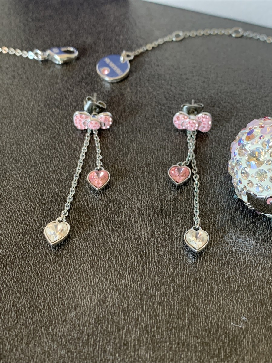 Il se marie parfaitement avec des robes, des t-shirts et même des costumes de cosplay, attirant tous les regards sans pour autant éclipser les vêtements. Hello Kitty Ensemble de bijoux avec bandeau, collier et bracelet en perles dans les tons roses et nacrés | Accessoires officiels pour enfants à partir de 3 ans avec motif kawaii et emballage cadeau L'ensemble peut être combiné ou porté seul pour attirer l'attention. Occasions Polyvalentes: cet ensemble de trois bijoux est l'accessoire parfait pour les fêtes d'anniversaire, les événements cosplay, les réunions d'anime ou la mode quotidienne. Il séduira tous les amateurs de Hello Kitty, les fans d'anime ou les filles à la pointe de la mode. Necklace Swarovski Parure De Bijoux Hello Kitty : Collier Et Boucles D'oreilles Chat Parure Bijoux Hello Kitty Il est idéal pour les événements de cosplay anime, les soirées à thème, les tenues mignonnes de tous les jours et pour être combiné avec des amis. Célébrez votre âme d'enfant avec style tout en conservant l'élégance et la praticité pour un usage quotidien. Cadeau Parfait: que ce soit pour votre petite amie, votre fille, votre meilleure amie ou vous-même, cet ensemble de bijoux est un cadeau attentionné. Design Hello Kitty: cette parure de bijoux s'inspire de l'adorable et pleine de vie Hello Kitty, avec son nœud rouge emblématique et ses cristaux rouges étincelants. Boucles d'oreilles Swarovski Hello Kitty en forme de nœud en métal argenté Métallisé ref.1423248 - Joli Closet Style Tendance: combinant le charme de la culture mignonne avec des tons argentés classiques, cet ensemble de bijoux s'adapte facilement aux tenues décontractées comme aux soirées à thème. Le collier Y de 31,5 cm, agrémenté d'une extension de 17 cm, permet un ajustement sur-mesure et crée une ligne verticale valorisante. Le bracelet, d'un diamètre intérieur de 5,3 cm, présente une succession de cristaux facettés offrant un jeu de reflets subtil et élégant