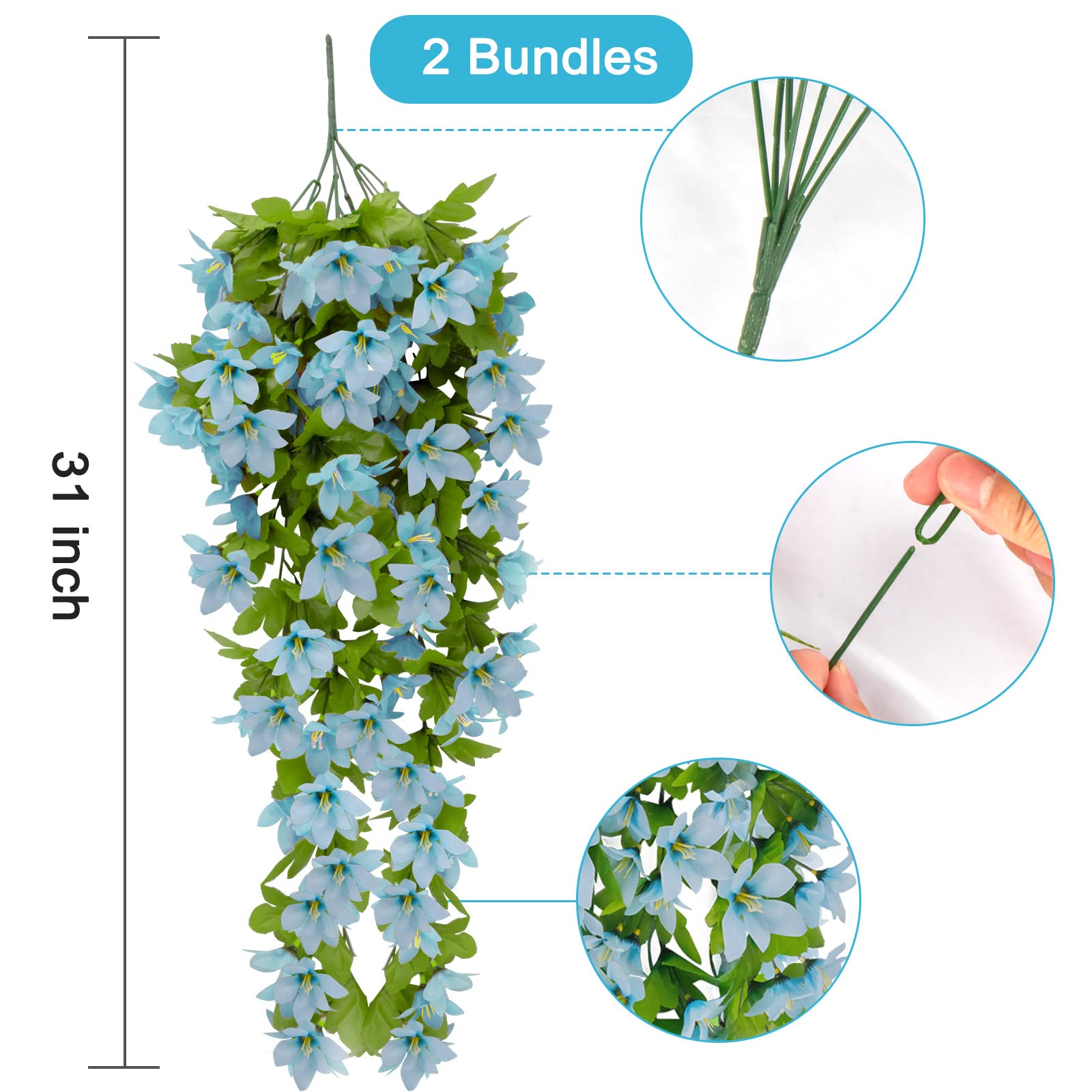 【Décoration multifonction 】 les paniers artificiels suspendus sont parfaits pour décorer les espaces intérieurs et extérieurs, ajoutant une vie vibrante aux murs et clôtures, peuvent être accrochés n'importe où dans vos activités, flottant dans le vent, très ornemental, un paysage lumineux, créant une atmosphère romantique Avec une longueur de 76 cm, ce panier suspendu est le complément parfait de votre décor existant. Petits prix et livraison gratuite dès 25 euros d'achat sur les produits AGSYFFD. Commandez AGSYFFD 5 Pièces Plante Suspendue Artificielle, Panier Suspendu Artificiel, Plante à Fleurs simulées, Convient pour l'intérieur et l'extérieur, Le Jardin, l'entrée, Le Mariage, la décoration Murale Plante suspendue artificielle Fougères Remarque : lorsque vous recevez les fleurs artificielles, elles peuvent être déformées en raison de l'extrusion, veuillez les ajuster vous-même 2 Pièces Panier Fleurs Artificielles sur Mur, Panier Suspendu 【Utilisations】 les fleurs artificielles sont adaptées pour la clôture, le balcon, la terrasse, l'allée, les décorations murales. Elles conviennent également pour les mariages, les fêtes, les anniversaires, les décorations parfaites pour la maison/les festivals tout au long de l'année Shyshining Fleurs artificielles à suspendre avec panier, fausse plante à suspendre, faux campanule en soie, arrangement de fleurs artificielles pour extérieur et intérieur, jardin, cour, poche, porche, avant-toit, balcon, décoration (bleu 【Design réaliste】 paniers suspendus artificiels élaborés, fleurs artificielles et vignes, beauté naturelle, fleurs aux couleurs vives, texture de feuillage réaliste, fleurs résistantes à la lumière, fleurs durables, peuvent ajouter de la brillance à votre jardin AGSYFFD Les fleurs artificielles apportent la beauté de la nature dans votre maison, et la verdure artificielle réaliste ajoute une touche d'élégance et de fraîcheur à n'importe quelle pièce. Suspendues dans le salon, la chambre à coucher ou même le bureau, elles donneront un aspect rafraîchissant.
