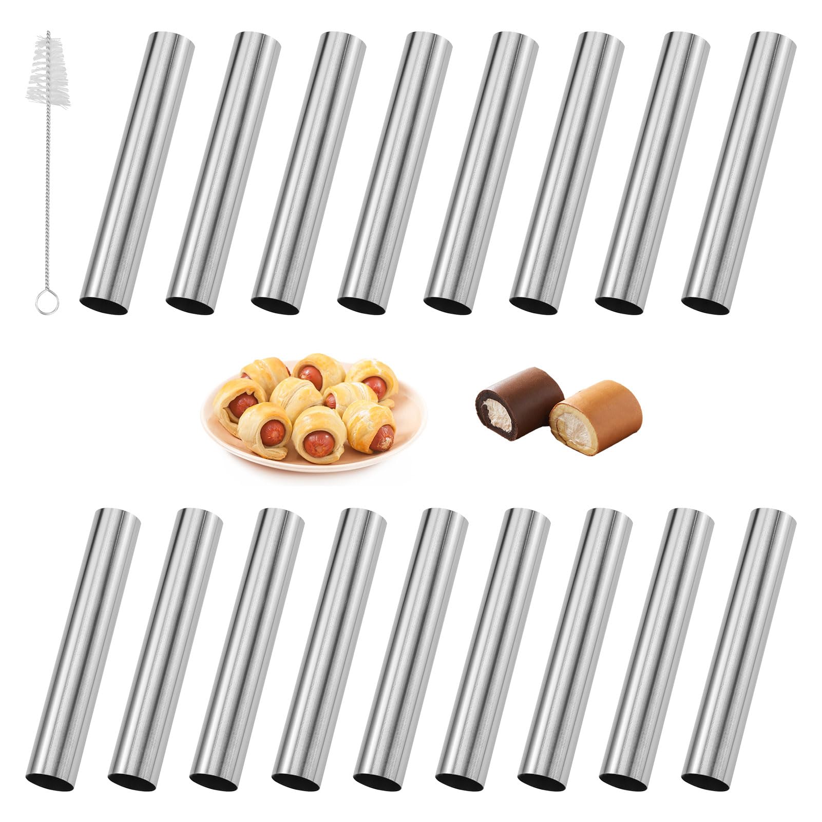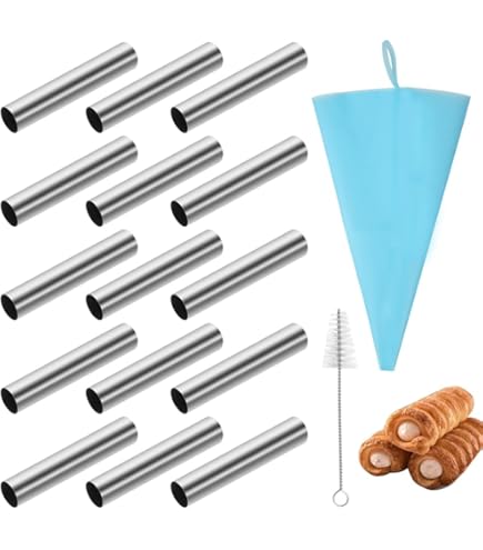 Tubes de Cannoli moules de corne de crème en acier inoxydable Accessoire Cuisine Avec Brosse Nettoyage Lot De 20 Moules à Cannoli En Acier Inoxydable Anti-adhésif Avec Brosse De Nettoyage Moules Pâtisserie Cannoli Croissants Vous recevrez : 17 moules à cannoli ronds avec une grande brosse de nettoyage de 12 cm x 2 cm, assez pour répondre à vos besoins Caracteristiqu1., Grands moules à crème en acier inoxydable de qualité supérieure., 2., Moule à croissant, léger, antirouille, durable et facile à nettoyer 3., Parfait pour la pâtisserie, les cannoli, les coins de crème, les pâtes feuilletées, les rouleaux de chocolat, les croissants, les petits pains, etc. Revêtement antiadhésif et facile à nettoyer : les moules ont une surface lisse, de sorte que la pâte reste moins collante lors de la cuisson. Les moules à corne de crème presque sans soudure n'attrapent pas la pâte et facilitent l'enlèvement des produits de boulangerie. Lavez avec notre brosse de nettoyage sans ménage pour vous facilement En même temps, ce revêtement antiadhésif facilite le nettoyage, vous pouvez enlever facilement et rapidement les restes de pâte et économiser ainsi du temps et de l'énergie. Facile à utiliser : enroulez ou attachez la pâte autour de ces tubes de cannoli, faites-les cuire au four ou faites-les frire dans l'huile, et les coquilles de cannoli creuses sont prêtes à être remplies de garniture Cadeau idéal : les moules à cannoli sont un excellent outil de bricolage, parfait comme cadeau pour les débutants ou les professionnels de la pâtisserie, pour vous faire plaisir Couleur : argent Le paquet contient : 17 moules à cannoli ronds avec une brosse de nettoyage de 12 cm x 2 cm