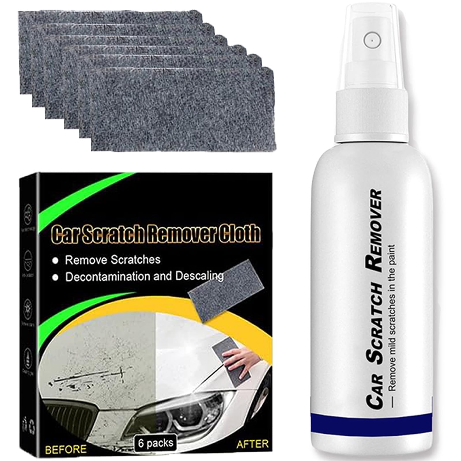 Kit de réparation de rayures de voiture Nano Sparkle Cloth Produit Rayures Surface Voiture Nano Sparkle Cloth Pour Les égratignures De Voiture (4 Pièces Fixapro Rayure Voiture Large Application: Le dissolvant de rayures de voiture convient à tous les modèles et couleurs de véhicule, qu'il s'agisse d'une voiture, d'un SUV, d'un camion, d'une moto ou d'un vélo, convient aux petites rayures, aux rayures légères, aux poignées de porte, aux rayures des ongles, aux rayures mineures, aux dommages mineurs à la peinture, aux rayures mineures, aux tourbillons de peinture après le polissage, et peut également éliminer les taches tenaces, la saleté, les fientes d'oiseaux Emballage Inclus: Notre Car Scratch Remover Kit contient 120 g de pâte de réparation pour rayures, six feuilles de tissu nano et une éponge. Réparation Efficace des Rayures: Cette Efface Rayure Voiture des rayures élimine efficacement les rayures sans endommager la peinture d'origine. Ce produit comprend 6 paquets de tissu Nano Flash spécialement conçu pour l'élimination des rayures de voiture (Remarque: ne convient pas aux voitures avec des cristaux de placage ou des films de protection de peinture., ) Idéal pour voitures, motos, vélos, jantes... Le mode d'emploi est simple : nettoyer la surface, appliquer en suivant la rayure, laisser sécher. Le résultat Mais attention, lors de l'utilisation de ce produit, assurez vous que la surface à réparer est sèche Qu'il s'agisse d'une éraflure mineure ou d'une égratignure de surface, ce produit aidera à redonner à la surface de votre voiture son éclat d'antan
