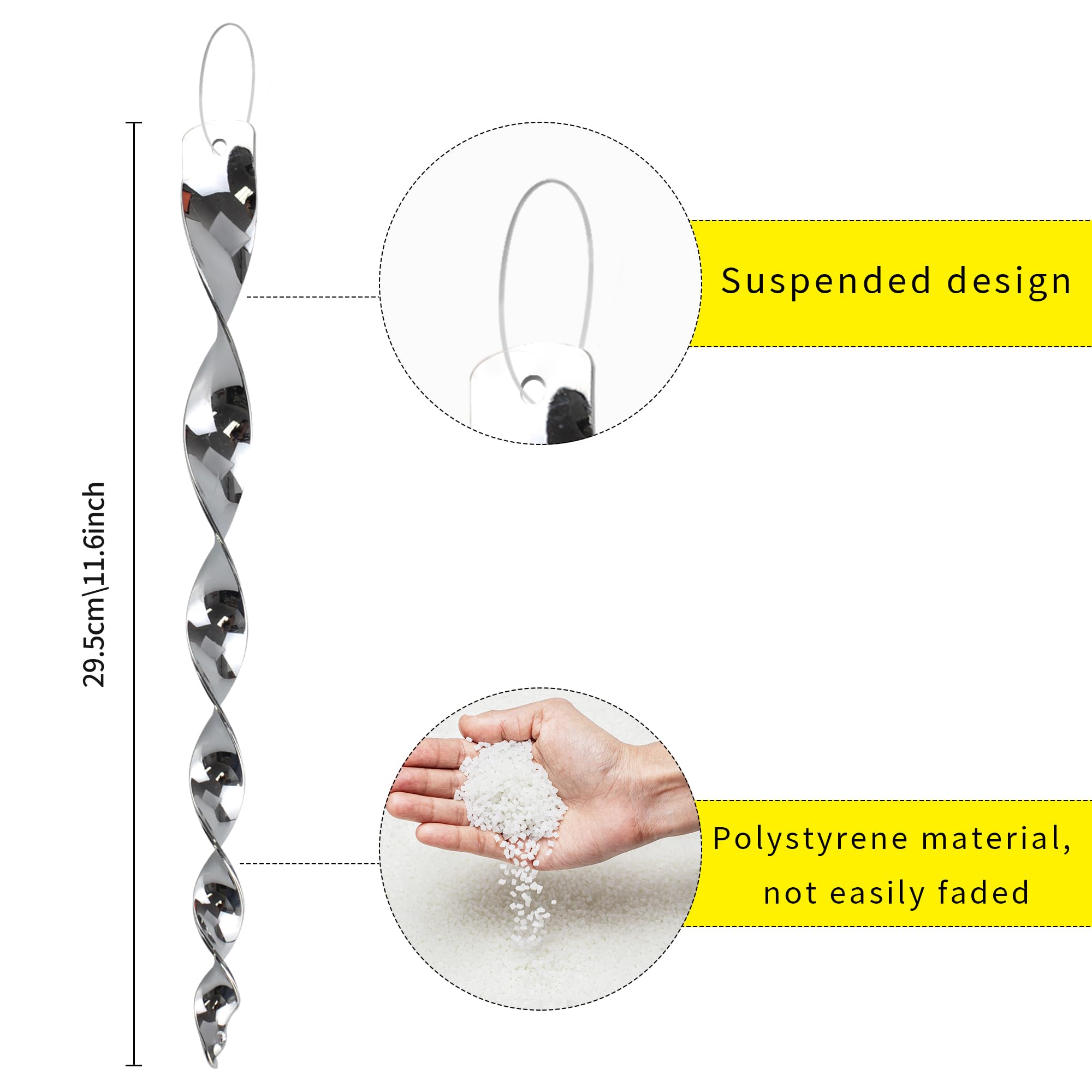 Répulsif Oiseaux Extérieur Akozon Répulsif Pour Oiseaux Tige Répulsive D'oiseau Rotative Suspendue Accessoire Jardin Anti-oiseaux ASSISTANCE CONTINUE - En cas de problème lors de l'utilisation ou de l'installation, n'hésitez pas à nous contacter. Solution respectueuse de l'environnement : En s'appuyant sur des reflets de lumière au lieu de produits chimiques ou de pièges nocifs, ces tiges anti-oiseaux offrent une approche humaine et écologique du contrôle des oiseaux Gardez les oiseaux à l'écart : les dispositifs effrayants tournent dans le vent et réfléchissent la lumière pour effrayer les pics, les pigeons, etc Conseil : Les cordes élastiques pouvant se casser facilement, nous recommandons de les remplacer par des cordes plus résistantes. Notre service client est disponible 24h/24 et 7j/7. Lot de 6 tiges réfléchissantes rotatives répulsives pour Applications Multiples : Ces tiges peuvent être suspendues aux avant-toits, branches, balcons, jardins, vergers et autres zones nécessitant une protection contre les oiseaux, tout en décorant votre espace de vie. Tiges à effrayer les oiseaux KOKMEYA Matériau du produit : plastique. Poids : 0 kg par pièce., Couleur : argenté. Elles sont fournies avec une corde élastique pour une fixation facile. Occasions : extérieur, maison, jardin, terrasse, etc., Rotation par brise. Tiges Réfléchissantes Effaroucheuses - Rotation par brise. Plus le nombre de tiges est important, meilleur est l'effet. Taille d'une pièce : 29,5 x 2,5 x 2,5 cm.