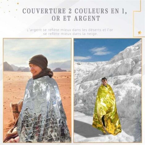 Découvrez le sens d'une couverture de survie et apprenez comment l'utiliser efficacement pour vous protéger du froid ou de la chaleur Côté or : protection contre la chaleur, lapartie dorée contacte avec la peau. Protection Hypothermie Chaleur Couverture De Survie Isotherme - Protégez-vous En Toute Situation Couverture Thermique Urgence Dans tous les kit de premiers secours, il ne doit jamais manquer une couverture de survie. 3 EN 1 : protection contre le froid, la chaleur, et l'humidité. FACILE À UTILISER : dans les moments extrêmes quand nous avons peu de temps pour réflechir, il faut agir vite. Avis clients · Facilité d'utilisation (4,6/5) · Rapport qualité / prix (4,3/5) · Performance (4,4/5) · Simplicité d'entretien (4,8/5 Couverture de Survie Résistante Imperméable Isolante Acheter une couverture thermique de survie or ou argent est utile pour avoir un gardin toujours auprès de vous. PRIX ET QUALITÉ : vous gagnerez plus que ce que vous l'avez payé car cette couverture de survie offre de nombreux avantages. En effet, c'est un article de survie indispensable, qui, dans les moments critiques peut sauver des vies et protéger votre corps d'une crise d'hypothermie ou d'une bouffée de chaleur par insolation.