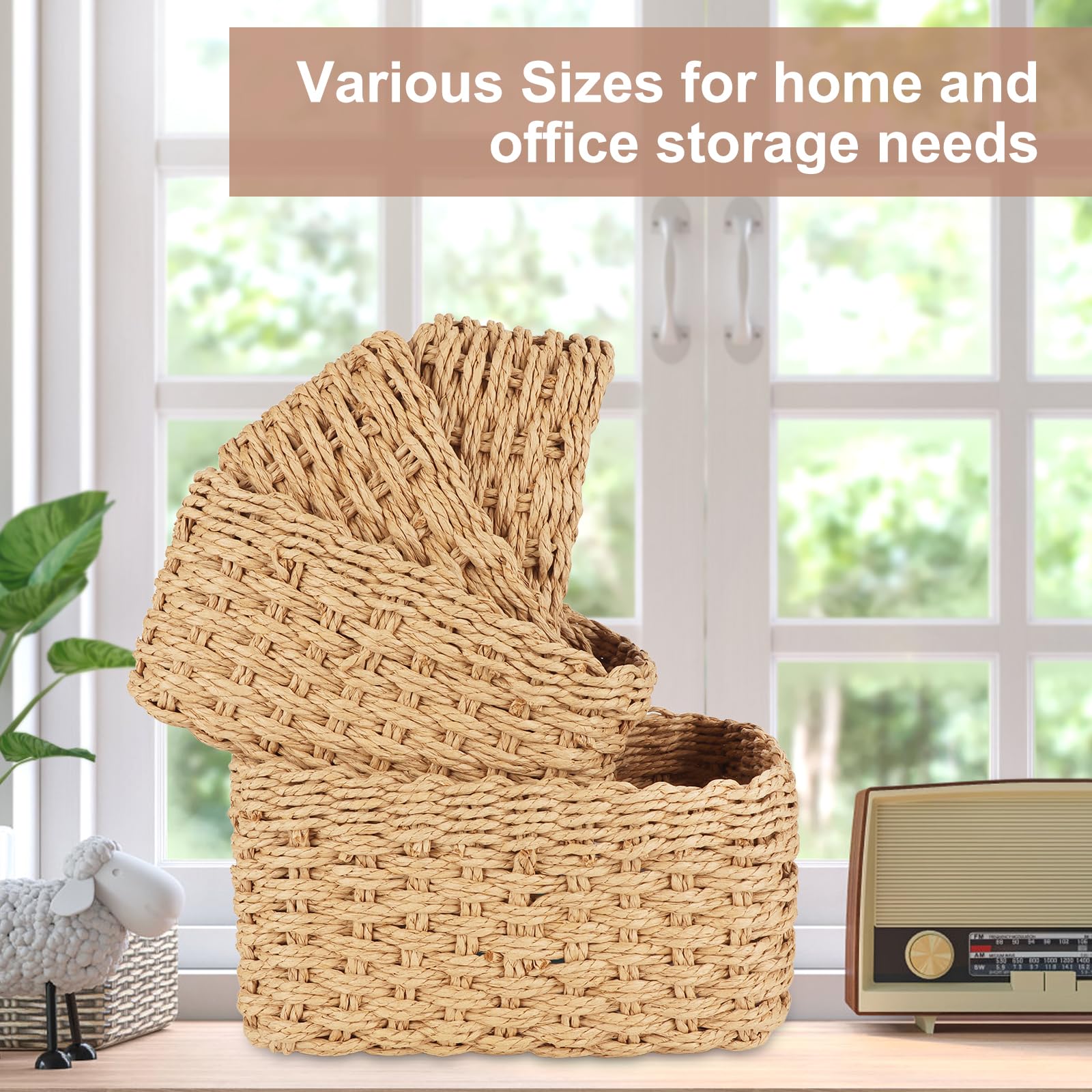 Matériaux de qualité : les paniers de rangement sont tissés à la main à partir de cordes en papier recyclé, sans bords tranchants et non toxiques, garantissant la sécurité des enfants et la durabilité, tout en étant résistants aux chutes Plusieurs tailles disponibles : ces paniers sont disponibles en plusieurs tailles (par exemple, 15 x 10 x 7 cm, 19 x 13 x 9 cm, 21 x 15 x 10 cm, 23 x 17 x 11 cm, 25,5 x 19,5 x 12 cm), ce qui les rend parfaits pour ranger des articles pour bébés, des cosmétiques, des jouets et de petits articles ménagers Design élégant et polyvalent : grâce à leurs tons chauds et leur style raffiné, ces paniers décoratifs sont à la fois une solution de rangement pratique et un élément décoratif qui s'intègre harmonieusement à différents styles d'intérieur GYASVWU Panier de rangement carré en corde de papier tissée Le cadeau idéal pour vos proches : les 5 paniers de rangement en corde de différentes tailles, avec leur design raffiné et leur polyvalence, constituent le cadeau idéal pour vos proches, améliorant l'esthétique et la fonctionnalité de la vie quotidienne Magasinez Paniers de rangement tissés , paniers de rangement polyvalents en corde de papier pour la cuisine, la chambre à coucher et les accessoires de salon, fournitures dorganisation et de décoration pour la maison sur . Découvrez d'autres prix imbattables sur Home & Kitchen Paniers Décoratifs Salon Salle Bain Lot De 2 Panier Rangement Tissé En Corde De Papier, Boho Decor Panier Amazone Mon Compte Mon Panier Le cadeau idéal pour vos proches : les 5 paniers de rangement en corde de différentes tailles, avec leur design raffiné et leur polyvalence, constituent le cadeau idéal pour vos proches, améliorant l'esthétique et la fonctionnalité de la vie quotidienne