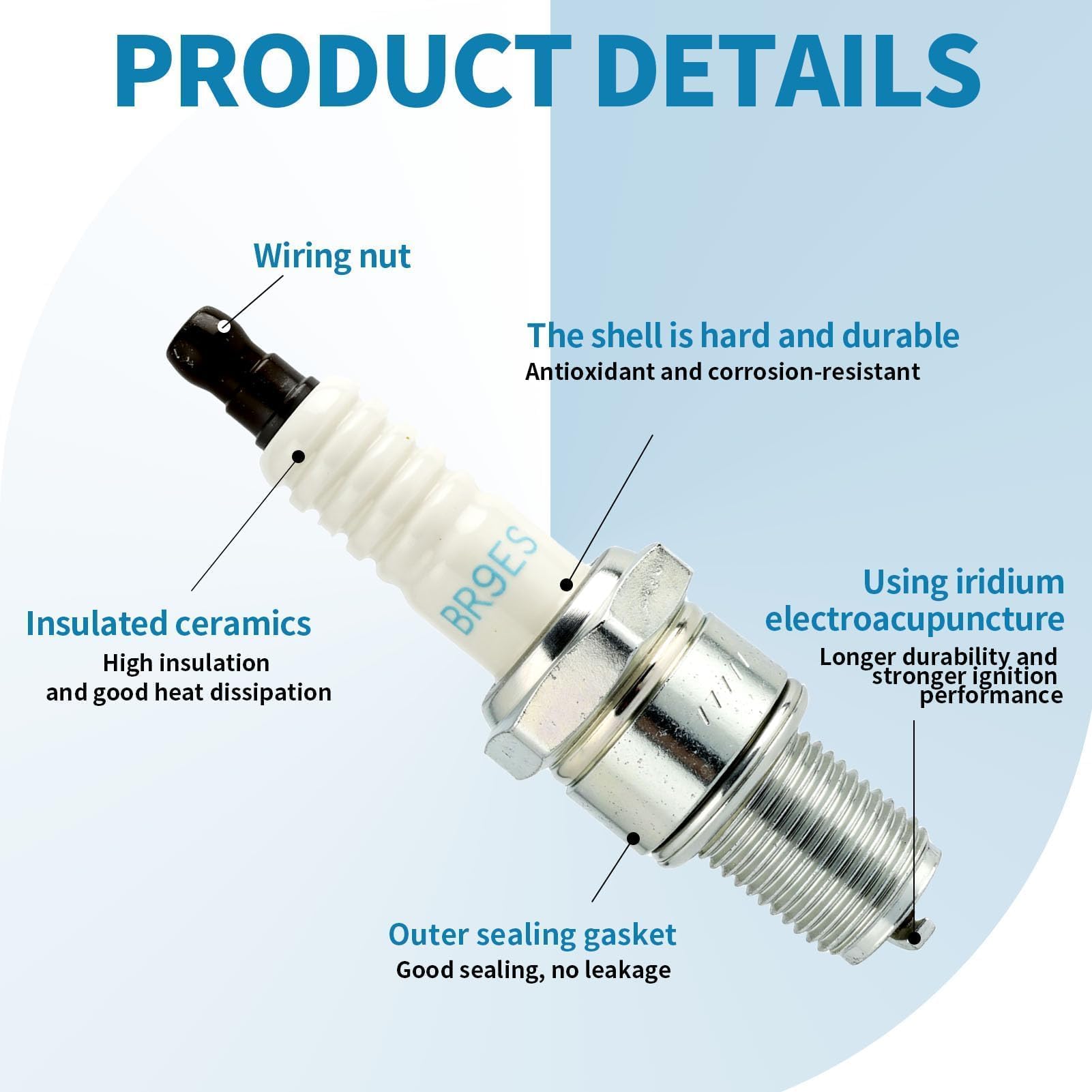 Prête à l’emploi pour l’entretien rapide des moteurs 4 temps compatibles. Bougie d'allumage NGK pour Scooter Sym 50 Symphony Sr 4T 2011 CR7HSA Neuf. 56,70 € ; Bougie d'allumage NGK pour Moto BMW 650 F Cs 2002 à 2005 DR8EB · 16,94 Spécifications du produit Paramètre Spécification BR9ES Référence produit BR9ES Filetage 14 mm Longueur du filetage 19,0 mm Écartement 0,8 mm (±0,05 mm) Indice thermique 9 (modèle froid, usage intensif) Résistance 5 kΩ (anti-interférences) Couple de serrage 25–30 Nm (culasse fonte) 20–25 Nm (culasse aluminium) Type de siège Siège à joint Clé hexagonale 20,8 mm (standard) Électrode Masse standard Type de borne Connecteur amovible Contenu 4 × bougies NGK BR9ES Remarque d’installation : Bougie froide (indice 9) conçue pour moteurs à hauts régimes ou turbo. Performance de combustion optimisée : Une étincelle forte et régulière améliore la combustion du carburant dans le cylindre. Durabilité et fiabilité : Fabriquée avec des matériaux résistants à la corrosion et à haute température, cette bougie offre une longue durée de vie. Résultat : une efficacité énergétique accrue, un couple moteur plus fluide et moins d’émissions polluantes. Son noyau en cuivre assure une dissipation thermique efficace, prévenant toute surchauffe et prolongeant sa durée de vie. NGK Lot de 4 bougies d'allumage standard OEM # BR9ES-4PK Installation facile : Avec un filetage standard M14 (14 mm) et une clé de bougie de 20,8 mm, le montage est simple. Respecter le couple de serrage selon le matériau pour éviter les dommages. Compatibilité étendue : Conçue pour les moteurs 4 temps de scooters, motos légères et quads, cette bougie convient aux cylindrées petites à moyennes (< 250 cm³), qu’elles soient refroidies par air ou liquide. En assurant une étincelle précise et constante, elles garantissent une combustion optimale du mélange air-carburant. Conçues pour répondre aux exigences de tous les types de moteurs, les bougies NGK s’adaptent aussi bien aux motos de route qu’aux machines tout-terrain Lot 4 Bougies Bougie Ngk Br9 Bougie D'allumage NGK B9ES - Pour Scooters Et Petits Moteurs Bougie Qualité NGK Originale Bougies Froides Indice 9 De plus, sa résistance interne de 5 kΩ filtre les interférences EMI, garantissant une étincelle stable et une combustion uniforme même dans des conditions extrêmes.