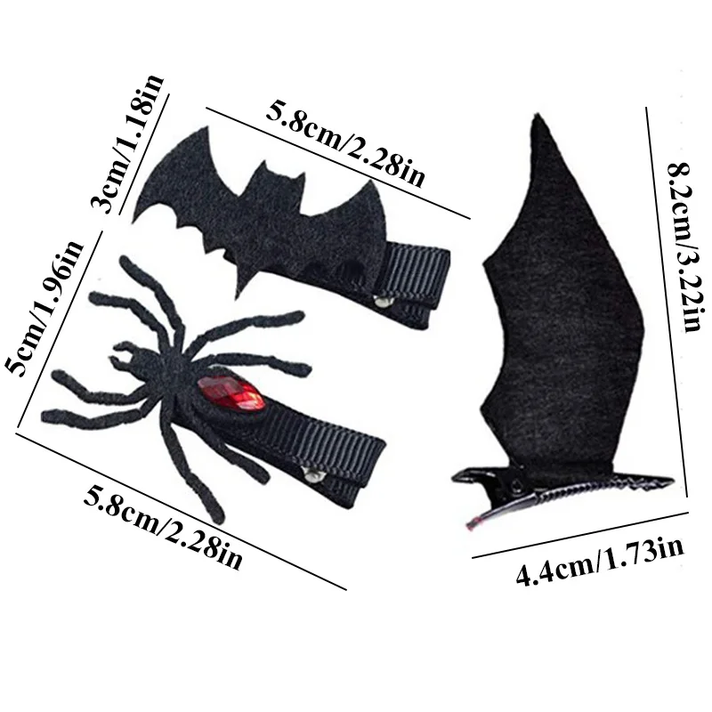 Confortable à porter : la conception de l'épingle à cheveux s'adapte à la courbure de la tête, a une adhérence modérée, n'est pas facile à glisser, ne tirera pas les cheveux lorsqu'elle est portée et ne causera pas d'inconfort lorsqu'elle est portée pendant une longue période. Style unique : ensemble de 4 épingles à cheveux, comprenant 2 pièces de style crâne blanc et 2 pièces de style crâne taché de sang, incorporant des éléments de chauve-souris pour ajouter une touche sombre et mystérieuse à votre look d'Halloween. Combinaison à prix avantageux : possédez deux styles à la fois pour répondre à vos besoins d'association. 1 Paire De Pinces À Cheveux Halloween Ailes Du Diable Noir Épingle À C'est un choix économique pour un look d'Halloween et peut également être offert comme cadeau de fin d'année. Description de Lot de 2 barrettes à cheveux Halloween, adorables pinces à cheveux chauve-souris effrayantes en gros-grain Design unique : Nœud papillon gros-grain 3 couches pour cheveux d'Halloween avec fantômes et chauves-souris, thème classique d'Halloween Accessoire Cheveux Chauve-souris Lot De 2 Barrettes à Cheveux Gothiques En Forme D'ailes De Chauve-souris Pour Halloween Et Pince Cheveux Halloween FUNCTION]:Les clips d'oreilles de chauve-souris de VPOUERY vous aideront à créer une coiffure glamour et attrayante, ils seront attrayants et faciles à clipser...