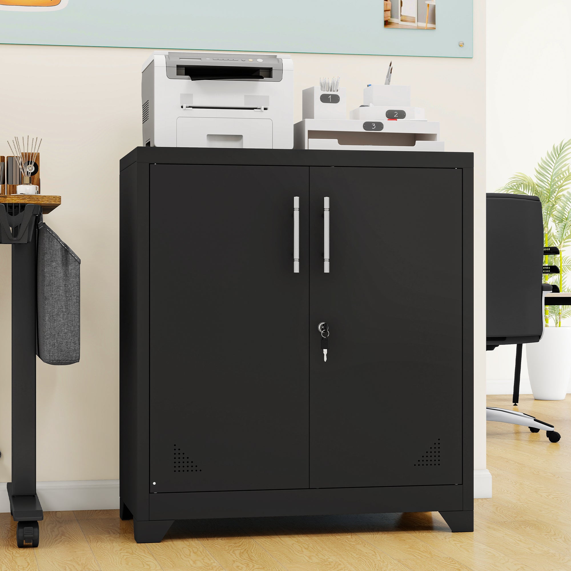 Armoire Bureau KOMHTOM Moderne Meuble De Rangement Bureau, Classeur Mobile à 3 Meuble Pour Imprimante Solidité et résistance au quotidien : Ce casier est fabriqué en métal épais pour garantir une longue durée de vie. Retrouvez ci-après nos 135 offres, marques, références et promotions en stock prêtes à être livrées rapidement dans nos magasins les plus proches de chez vous. Armoire de bureau mobile à trois tiroirs, armoire de rangement de bureau à roulettes, pouvant contenir des documents et des imprimantes Découvrez la sélection Meuble imprimante pas cher de . Qualité et Confort au meilleur prix. Retrait magasin et Livraison Style du produit : Moderne, Remarque: 1., Les mesures étant prises manuellement, il peut y avoir une erreur de 2 à 3 cm, ce qui est normal., 2., Toutes les photos sont prises en nature, en raison de la lumière ou du moniteur, il peut y avoir une légère différence de couleur., 3., Si vous avez des questions, veuillez d'abord contacter notre service clientèle. Montage rapide et facile : Ce classeur mobile est conçu pour être facile à assembler et est accompagné d'instructions claires, étape par étape, que vous pouvez suivre pour terminer l'assemblage rapidement. Meuble rangement cuisine pas cher Il permet d'optimiser l'espace tout en gardant l'équipement mobile et facilement accessible Ce support d'imprimante est équipé de 4 roues, dont deux avec fonction de freinage, pour un mouvement flexible et un positionnement stable, adapté aux scénarios d'utilisation fréquente. La structure entièrement métallique est robuste et durable, résistante à la pression, pour répondre aux besoins des bureaux à haute intensité, c'est l'équipement de soutien idéal pour une zone d'impression efficace. Matériau principal : Métal Couleur principale : Noir/Blanc L'intérieur de l'armoire est équipé d'une cloison réglable en hauteur, idéale pour ranger les fournitures, le papier ou les accessoires Idéal pour une utilisation fréquente dans des environnements professionnels ou domestiques La partie supérieure du support a une forte capacité de charge pour les grandes imprimantes ou les copieurs, et la partie inférieure de l'armoire est équipée de séparateurs réglables en hauteur pour un rangement pratique du papier, des cartouches d'encre et d'autres consommables.