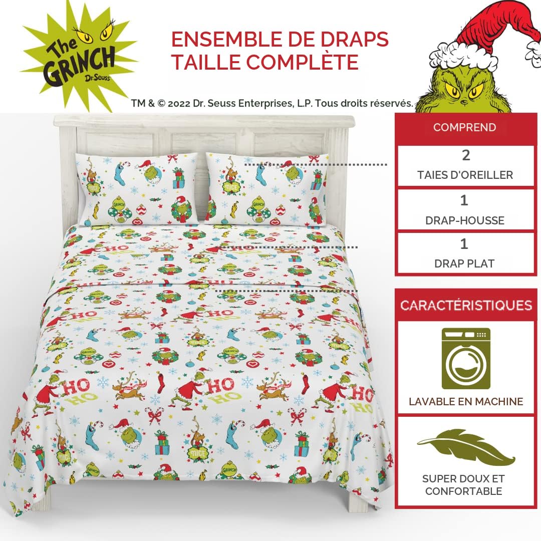 Apporte la magie (et l'ironie). NICHIYO The Grinch Parure de lit 3 pièces avec housse de couette et taie d'oreiller en microfibre et impression numérique 3D (housse de couette taies d'oreiller) (4,lit simple 135 x 200 cm Idéal pour les enfants, les garçons et même les adultes qui ne veulent pas renoncer au confort avec une touche de gaieté. Parure complète pour lit simple : comprend 1 drap de dessus 150 x 280 cm, 1 drap housse 85 x 195 cm, 1 taie d'oreiller 50 x 80 cm – parfait pour les lits simples standard Excellente idée de cadeau : un cadeau parfait pour les enfants, les garçons ou les amateurs de Grinch - idéal pour la période de Noël. Parure De Lit Grinch Parure De Couette Lit Simple En Coton - Marron Foncé - HOME | H&M CH Drap De Lit L'impression du Grinch, colorée et détaillée, est résistante aux lavages et conserve sa brillance dans le temps. Design original Grinch: impression colorée et vive inspirée du célèbre personnage de Noël, pour une touche amusante et unique à votre chambre. Facile à laver : lavable en machine à 40 °C, résistant aux lavages fréquents sans perdre de couleur ou de douceur Seuss, ce set apportera une touche originale et amusante à la pièce, transformant chaque nuit en un petit moment de fête. Caradou Parure de Lit Enfant Mixte Etoiles | Bleu Câlin Un produit qui allie style, qualité et praticité, conçu pour ceux qui aiment se démarquer dans les détails. Drap-housse et Taie d'oreiller - RAPPORT - Rainbow Sky - Rayures Bonbon...