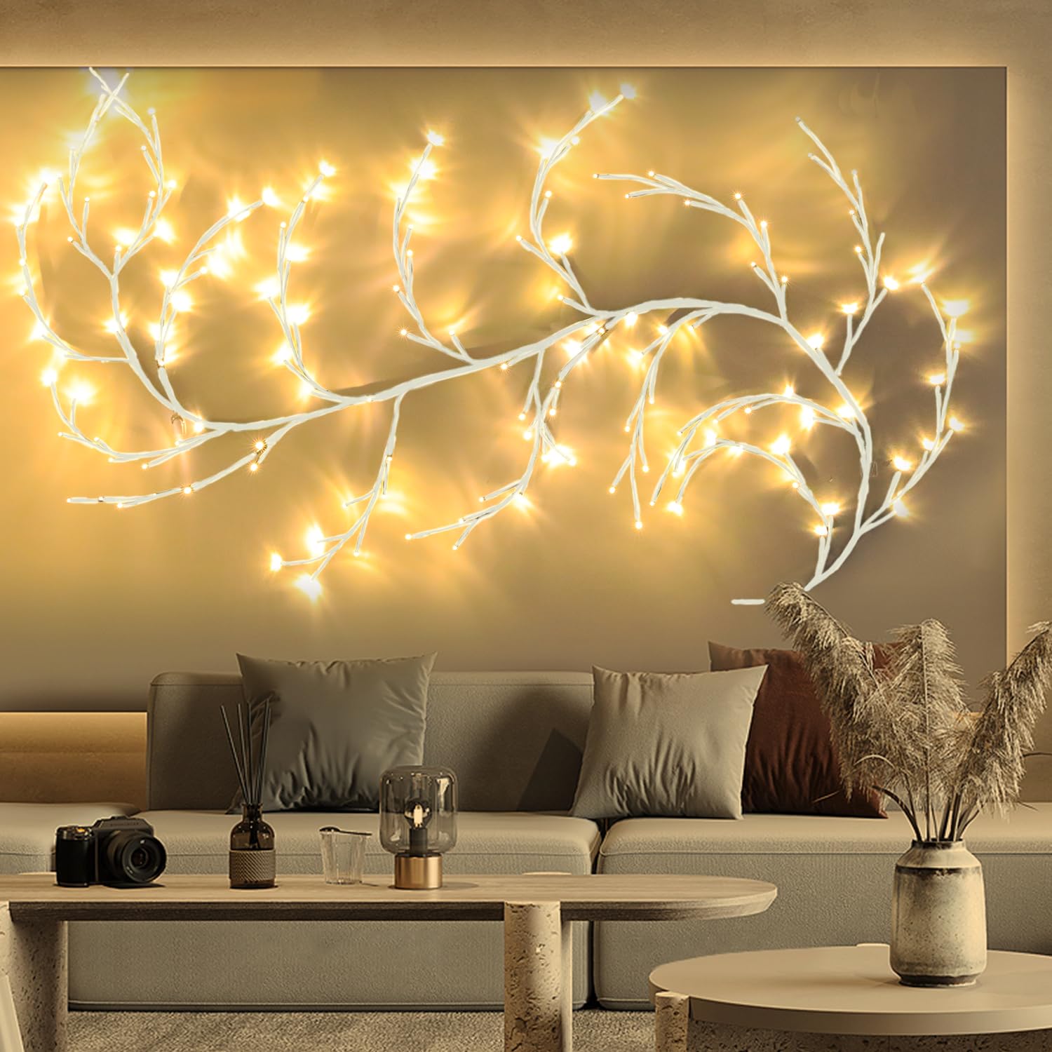 Huracan Willow Vine Guirlande lumineuse 144 LED, 2,3 m, avec télécommande, 8 modes, branches d'arbre artificielles flexibles, blanc chaud, décoration murale pour chambre à coucher, salon Ainsi, vous pouvez facilement fixer la guirlande lumineuse en osier au mur, à la fenêtre, à la cheminée ou aux escaliers – sans perçage, sans résidus. éclairage Déco Salon Chambre Willow Vine Guirlande Lumineuse Avec Prise - 144 Led Décoration Murale Arbre Lumineux Mural Les 144 ampoules LED blanc chaud de qualité supérieure assurent un éclairage uniforme et non éblouissant et une utilisation durable - Économie d'énergie et respectueux de l'environnement. Prise standard européenne pour une utilisation facile : la prise fournie est conforme à la norme européenne (certification CE/GS), s'adapte à toutes les prises européennes courantes et ne nécessite pas de piles. La structure de connexion sécurisée avec protection contre les surtensions assure une utilisation à long terme. Guirlande Lumineuse de Noël 50 M 500 LED Guirlande Lumineuse avec... LED warmes weißes Weidenlicht Innendekoration Büro Wohnzimmer 2,3 M 144LEDs anpa Avec ruban adhésif transparent pour une fixation facile : pour un montage rapide et sans résidus, nous fournissons un ruban adhésif double face transparent de 1 m de long et 5 mm de large. La mise au point reste sur la lumière, pas sur la fixation. Avec la fonction minuterie (6 h allumé/18 h éteint) et 5 niveaux de luminosité, la guirlande lumineuse LED s'adapte parfaitement à vos scénarios, que ce soit pour une soirée familiale confortable ou une fête festive.