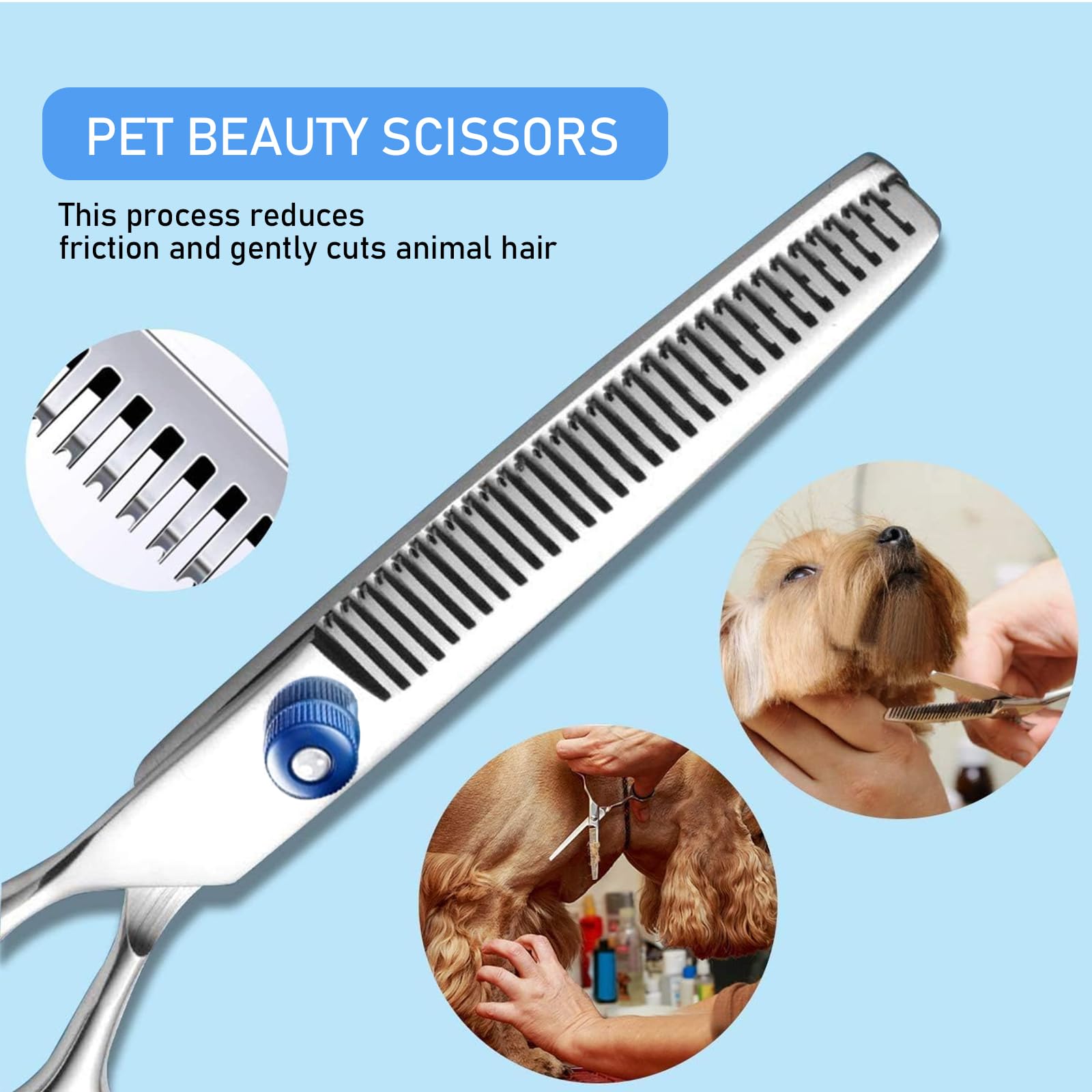 Top 10 ciseaux de toilettage pour chiens en 2025 (examinés et comparés Ciseaux Toilettage Chien Professionnel Quvxzy 2pcs s En Acier Ciseaux Chien Toilettage Leur forme courbée est particulièrement adaptée au toilettage des zones sensibles comme les yeux, le visage, les oreilles, les pattes et la tête, ainsi qu'à la coupe des poils, des griffes et de la barbe, pour une peau propre et belle. La qualité supérieure des matériaux assure une longévité exceptionnelle et une performance de coupe constante. Les anneaux en caoutchouc sur la poignée peuvent éviter de blesser vos doigts et empêcher de glisser, ce qui rend la prise en main confortable. Kit 4Pcs Ciseaux chien toilettage beauté en acier inoxydable Ces ciseaux sont également faciles à nettoyer et à entretenir, garantissant une longue durée de vie. Découvrez nos ciseaux professionnels et ergonomiques, parfaits pour façonner le pelage du chien ou du chat. Chez , nous nous engageons à offrir des produits de qualité supérieure, et nos ciseaux de toilettage ne font pas exception Leur conception antirouille garantit une utilisation sûre et hygiénique, et les instructions d'entretien fournies garantissent que vos ciseaux restent en parfait état, prêts pour votre prochaine séance de toilettage. Une pointe émoussée protège la peau de l'animal, tandis qu'un petit point sur la poignée réduit le bruit pour ne pas effrayer votre compagnon.