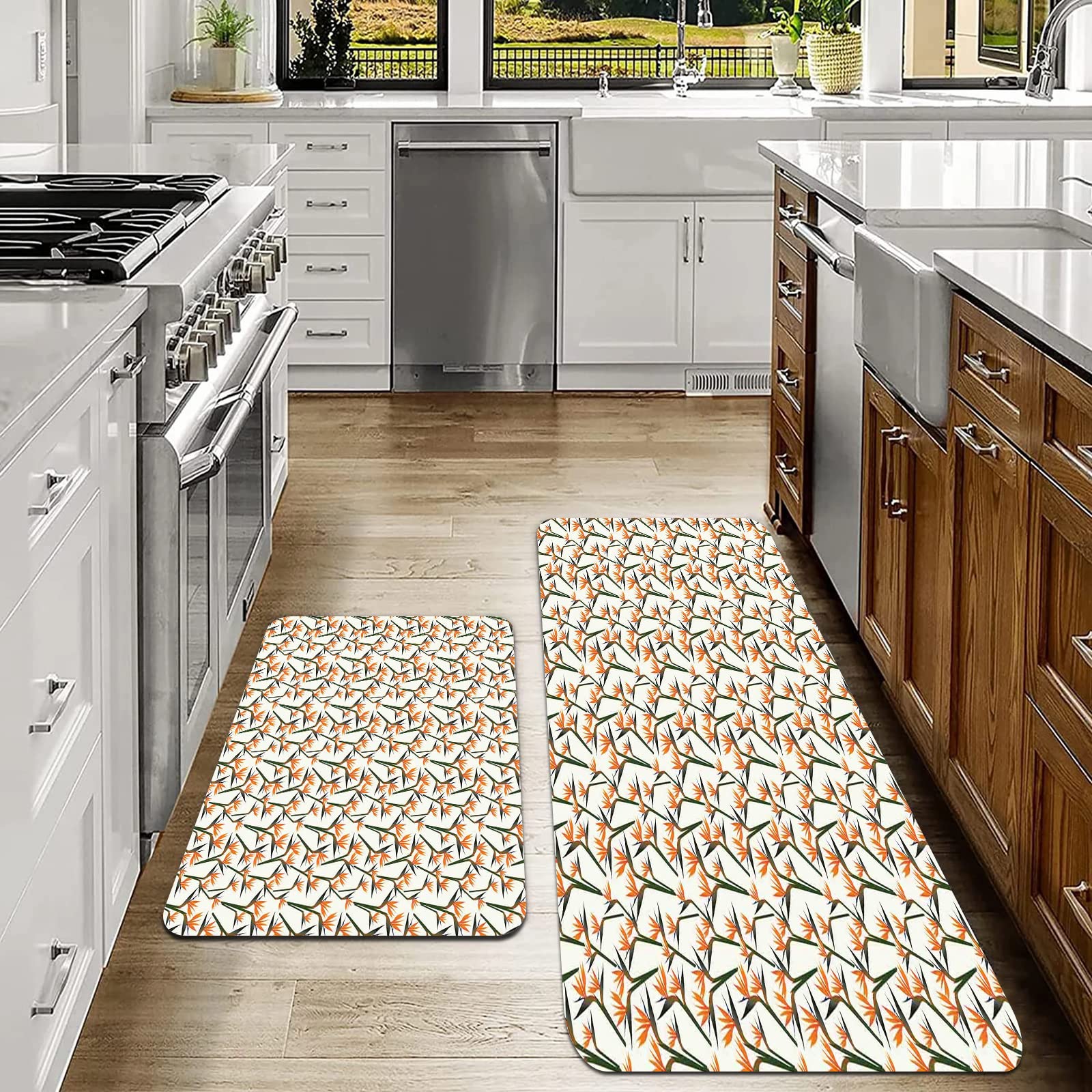 Polyvalents et adaptables, ces tapis sont parfaits pour divers scénarios, que ce soit pour travailler dans un garage, debout à un bureau ou cuisiner dans la cuisine. Nous vous présentons nos tapis de cuisine anti-fatigue, un lot de 2 tapis de cuisine antidérapants et imperméables en mousse à mémoire de forme imprimés fleurs noires et blanches, parfaits pour la cuisine, le bureau, la buanderie, et plus encore La taille généreuse des tapis offre une couverture et un confort optimaux, ce qui en fait un ajustement parfait pour les portes, les chambres d'enfants, les buanderies, les restaurants, les bureaux, devant la piscine et d'autres espaces. Ils absorbent l'humidité et sèchent rapidement, protégeant le sol de votre cuisine contre l'humidité. Ils s'adaptent également parfaitement aux fermes, aux portes d'entrée intérieures, aux porches, aux salons, aux couloirs ou à tout espace très fréquenté. Taille 120x43 Cm Et 75x43 Cm Lot De 2 Tapis De Cuisine Antidérapants,Lavande, Petit Bouquet De Tapis De Cuisine Anti Fatigue Offrez le confort et le style avec ces fabuleux tapis de cuisine Prise en main antidérapante : équipé de granulés antidérapants à l'arrière, nos tapis de cuisine à imprimé floral violet lavande offrent une résistance accrue et une résistance antidérapante. Nettoyage facile : le nettoyage de nos tapis de cuisine à imprimé floral violet lavande est un jeu d'enfant. Taille optimale : cet ensemble de tapis de cuisine imprimé floral violet lavande comprend un long tapis (120 x 43 cm) et un tapis court (75 x 43 cm). Tapis de Cuisine antidérapant et Lavable 2 pièces,Printemps, style contemporain Fleurs d'oiseaux de paradis Fleurs de ja,Tapis de Cuisine Devant evier pour Cuisine, buanderie, Salon(45x120cm+45x70cm Ces tapis sont parfaitement conçus pour s'adapter au sol de votre cuisine, bureau debout, bureau ou buanderie. Le tapis peut glisser au stade précoce de l'utilisation, et l'effet antidérapant est meilleur après une certaine période d'utilisation. Entretien facile : lavage à la main recommandé. Ce tapis de cuisine absorbe l'eau et sèche rapidement, protège votre cuisine de l'humidité et des taches
