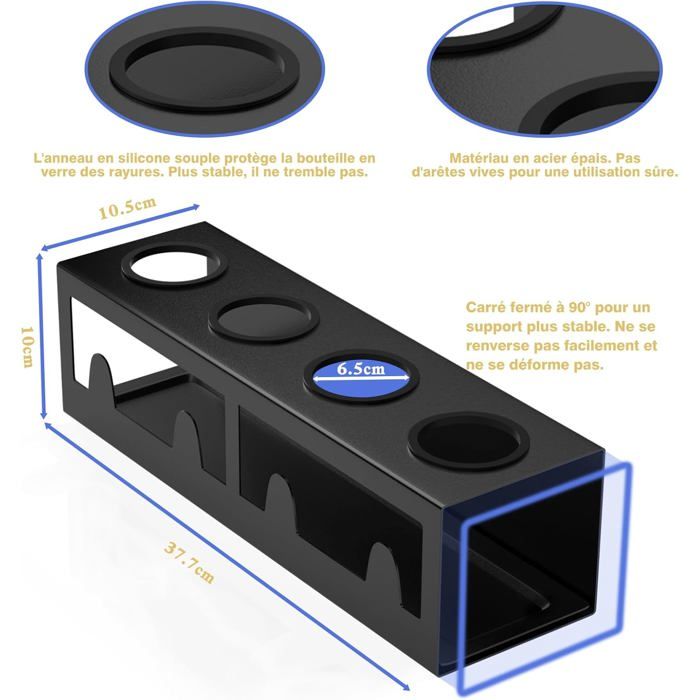 Polyvalent : l'égouttoir Alaschen peut contenir 6 formes et tailles différentes de bouteilles en verre, bouteilles et gobelets en même temps sans se renverser. Design vertical à 90 : l'égouttoir à bouteilles peut contenir 6 formes et tailles différentes de bouteilles en verre, bouteilles et gobelets en même temps, sans basculer Lot de 2 porte-bouteilles pour SodaStream - 6 porte-bouteilles - Égouttoir - Avec bac d'égouttement pour différentes bouteilles et tasses - Noir Caractéristiques : Convient à toutes les bouteilles. Contenu de l'emballage : 2 égouttoirs noirs pour bouteilles avec plateau d'égouttement en plastique (nouvelle version sans tapis d'égouttement). Les bords arrondis et le revêtement en poudre de qualité supérieure assurent une sensation agréable. Gain de place de 50 % : notre porte-bouteille pour soda stream ne mesure que 24 cm de large. Cela permet d'économiser de l'espace dans votre cuisine. Pratique : l'égouttoir à bouteilles convient à la plupart des tailles de bouteilles, jusqu'à 6 bouteilles, avec une courte colonne en bas pour les petites... Cependant, chaque bouteille est différente. Balconnet porte bouteilles pour réfrigérateur Schneider - 140C32 égouttoir Bouteilles Noir Avec Bac Porte-bouteilles Pour SodaStream, égouttoir à Bouteilles Sodastream Bouteille Verre S'adapte à toutes les bouteilles : de nombreux séchoirs à bouteilles en tôle métallique ont des trous fixes. Notre cadre est entièrement compatible avec toutes les bouteilles, qu'il s'agisse de bouteilles pour enfants, de biberons ou de bouteilles en verre. Pas de bords tranchants. Les bords arrondis et le revêtement en poudre de qualité supérieure assurent une sensation agréable., Utilisation polyvalente. Équipé de bouchons en caoutchouc et d'un bac d'égouttement (sans tapis d'égouttement).