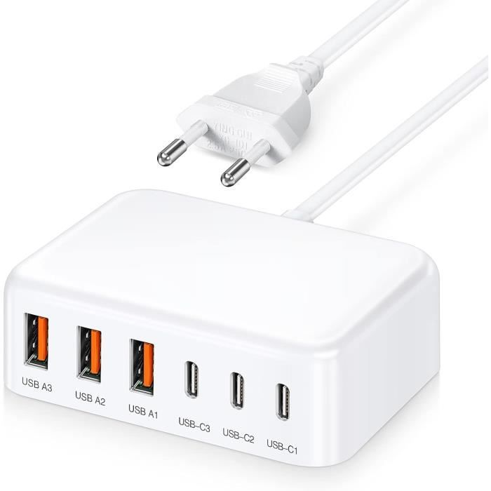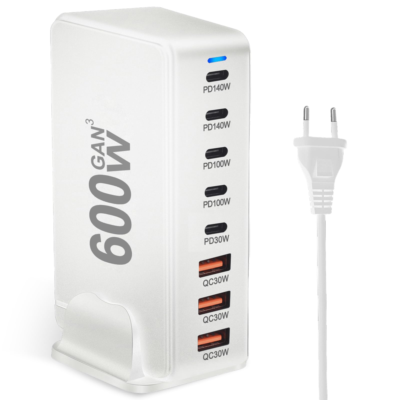 【Chargeur haute performance 600 W】Notre chargeur USB C avec une puissance totale de 600 W fournit une alimentation puissante et stable pour jusqu'à 8 appareils en même temps. Station de charge USB C 8 en 1 : ce bloc de charge USB-C intègre des ports USB-C et USB-A et peut être utilisé pour les chargeurs de téléphone, les chargeurs d'ordinateur portable et les chargeurs de voyage pour plusieurs appareils Idéal pour les smartphones, tablettes, ordinateurs portables et plus encore – idéal pour la maison, le bureau ou les voyages. 【Compatibilité universelle - Une station pour tout】Compatible avec iPhone 16/15/14, Samsung S23/S22, iPad, AirPods, ordinateurs portables et plus encore. Profitez de la liberté de pouvoir charger rapidement vos appareils à tout moment, n'importe où, sans avoir à transporter d'accessoires encombrants. Chargeur Usb -C Nastopee 600 W, Station De Charge Rapide Multi Chargeur Multi Ports USB-C Fini les enchevêtrements de câbles gênants ! La multiprise USB idéale pour toute la famille : moins d'adaptateurs, plus de confort ! Que ce soit lors d'une réunion, dans un café ou lors d'un voyage d'affaires, il se glisse facilement dans n'importe quelle mallette ou bagage à main. 【Station de charge 8 en 1 - Charge rapide pour tous les appareils】5x USB-C (2x 140W, 2x 100W, 1x 30W) + 3x USB-A (30W) - cette station de charge multiple charge l'iPhone, le Samsung Galaxy, le MacBook, l'iPad et plus rapidement et en toute sécurité. Fast Charger 140W GaN+ with Dual USB-C and USB-A Ports 【Sécurité maximale pour vos appareils】Notre chargeur USB-C 600 W avec technologie Multi-Protect empêche en toute sécurité la surchauffe, les courts-circuits et les fluctuations de puissance. EN STOCK : 600W Chargeur USB C Multiple, 8 Ports Chargeur Rapide GaN Multiprise QC PD, Chargeur Rapide Prise Station de Charge Compatible avec Laptop Phone, BT-UK2025YS-2552 pas cher. Livraison rapide partout en France