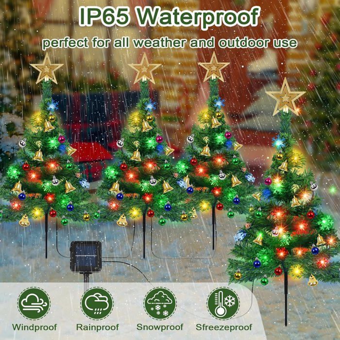 Les arbres de Noël solaires pour l'extérieur mesurent 39 pouces de haut et près de 18,5 pouces de large. Capacité de batterie 1500mAh Nouvel arbre de Noël solaire 2025 : chaque arbre de Noël d'extérieur est livré avec 100 lumières LED, 15 baies rouges, 12 décorations de Noël, 1 nœud et 1 panneau solaire, vous permettant de créer vous-même vos propres décorations de Noël. Il suffit d'activer l'interrupteur situé au-dessus du panneau solaire pour qu'il fonctionne automatiquement la nuit, ne nécessitant que la lumière du soleil : une décoration de Noël solaire très économe en énergie Baies rouges, boules de Noël, arc, perles de lumière 100LED Test : sapins solaires 100 LED 8 motifs pour extérieur Étanche IP65 et fonctionnement automatique : notre sapin de Noël solaire d'extérieur est fabriqué à partir de matériaux imperméables et fonctionne normalement par temps pluvieux ou nuageux. Il est idéal pour la décoration extérieure. Lumières de Sapin de Noël Nos lumières de sapin de Noël ajouteront une touche festive à votre jardin, Ce sapin 2 en 1 mesure 1,1 mètre de haut et est équipé de 100 LED C6, chacune dotée de 50 LED multicolores, Chaque sapin est espacé de 2 mètres, créant une ambiance de Noël romantique dans votre jardin, allée, balcon ou autres... 8 Modes Clignotants Lot De 2 Sapins De Noël Solaires De 100 LED Decoration Noel Décoration Noel Exterieur Panneau solaire haute efficacité de 39 pouces : Le nouvel arbre de Noël solaire pour cimetière est conçu en plusieurs sections, ce qui le rend plus grand que les autres arbres de Noël solaires pour cimetière disponibles sur le marché. Notre arbre de Noël solaire profite d'une plus grande capacité de batterie de 1500mAh pour fournir un éclairage plus long toute la nuit Ce lot de 2 sapins de Noël solaires répond à tous les besoins de décoration, et convient parfaitement aux jardins, aux cours et aux installations de Noël extérieures Nos lumières solaires de Noël ont 8 modes, y compris la combinaison, la vague, la séquence, la lueur lente, la chasse / le flash, la fade lente, le scintillement / le flash et la lumière constante pour répondre à divers besoins Ils fonctionnent automatiquement la nuit, créant une atmosphère magnifique et envoûtante. Il peut fonctionner pendant longtemps et peut être bricolage à volonté, répondant pleinement à vos besoins pour un arbre de Noël Ensuite, attachez les baies rouges et les boules de Noël, et placez les lumières LED au sommet.