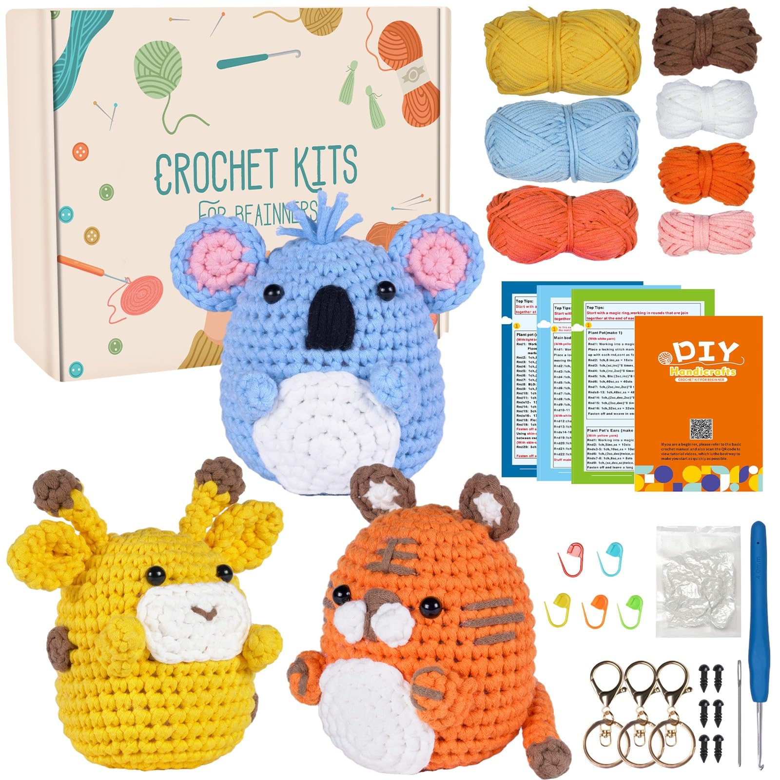 【Kits de Crochet】Notre kit de crochet pour débutants contient: 1 x livret d'instructions de base pour le crochet, 1 x manuel de modèles de crochet avec code QR, 1 x bâton de colle (coupé en deux), 1 x ciseaux de sécurité, 1 x crochet, 1 x sac de mailles, 2 x remplissage, 2 x aiguilles en acier, 3 x porte-clés, 8 x pelotes de fil pour débutants, 8 x yeux (8mm), 10 x mailleurs. Ce kit crochet pour débutant s’adresse à tous ceux et celles qui veulent apprendre à crocheter, sans se prendre la tête. Que tu sois seul·e, entre amis ou en famille, ce kit est parfait pour débuter en douceur 【Mode d'emploi du crochet pas à pas】Notre kit de crochet contient des instructions détaillées pour aider les débutants à découvrir les joies du crochet pour la première fois. Le kit de crochet convient à tous les groupes d'âge et constitue un excellent cadeau pour les anniversaires, la fête des mères, la Saint-Valentin, l'action de grâces, Noël ou toute autre occasion. Parfait pour tous ceux qui aiment crocheter et bricoler. Apprendre Crochet Facile SAVOSWEET Set Crochet Tricot, Kit Crochet Animaux Debutant, Tricoter Des Peluches Animaux, Kit Complet De Tricot De Crochet Adorable Animal Avec Fil à Crochets VidéO D'Instructions Kit Tricot Débutant Animaux Il suffit de scanner le code QR sur la carte Tutoriels vidéo. 【Décoration faite main】Les adorables ensembles de crochets crochetés sont parfaits comme décoration, par exemple : décoration intérieure de voiture, porte-clés/porte-tasses, décoration de bureau, décoration de salle de classe, décoration de jardin d'enfants et bien plus encore. Ce n'est pas seulement le crochet lui-même qui est amusant -- les petits animaux terminés. Le design ergonomique du crochet s'adapte à la courbe de la main et vous ne ressentirez pas de fatigue même après une longue période de tricotage, ce qui vous permet de profiter d'une expérience de crafting confortable et réduisant le stress. Kliplinc Kit de Crochets pour débutant, kit de Bricolage H avec Il est idéal comme cadeau pour les amis ou la famille qui aiment le crochet DIY. Grâce aux instructions étape par étape, vous apprendrez à crocheter sans difficulté. Il suffit de scanner le code QR sur la carte Tutoriels vidéo. Les débutants...