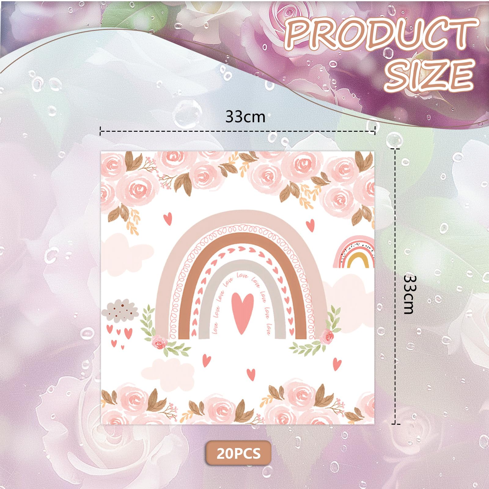 5,✨【Design authentique pour des moments inoubliables】: Laissez-vous emporter par la vivacité de nos serviettes Boho Rainbow et créez des souvenirs inoubliables lors de fêtes de bébé, anniversaires d'enfants et autres célébrations festives. Déco de table à thèmes: Une sympathique table "arc en ciel" Lot d 20 srvitts d tabls n papir Dimnsions: 33 x 33 cm Composition: n papir Pratiqus, cs srvitts d tabl n papir trouvront plac sur un bll tabl ou lors d'un piqu-niqu Parfaites pour des événements tels que mariages, fêtes de Noël, anniversaires, soirées, pique-niques et dîners. 3,🎉【Design charmant pour des occasions spéciales】: Fabriquées à partir de papier de cellulose natif, ces serviettes colorées attirent l'attention de vos invités et laissent une impression durable. 20 SERVIETTES PAPIER ÉCUREUIL ARC VÉGÉTAL 33CM Elles présentent de nombreux motifs élégants et charmants tels que des fleurs et des arc-en-ciels, attirant l'attention des invités et laissant une impression profonde. Chaque serviette mesure 33×33 cm (dépliée) et 17×17 cm (pliée), parfaite pour différentes occasions. Serviettes Papier Fête SULIUDAJI 20 Pièces 33 X 33 Cm Serviette Papier De Table Arc Serviettes Jetables Motif Fleurs Arc-en-ciel