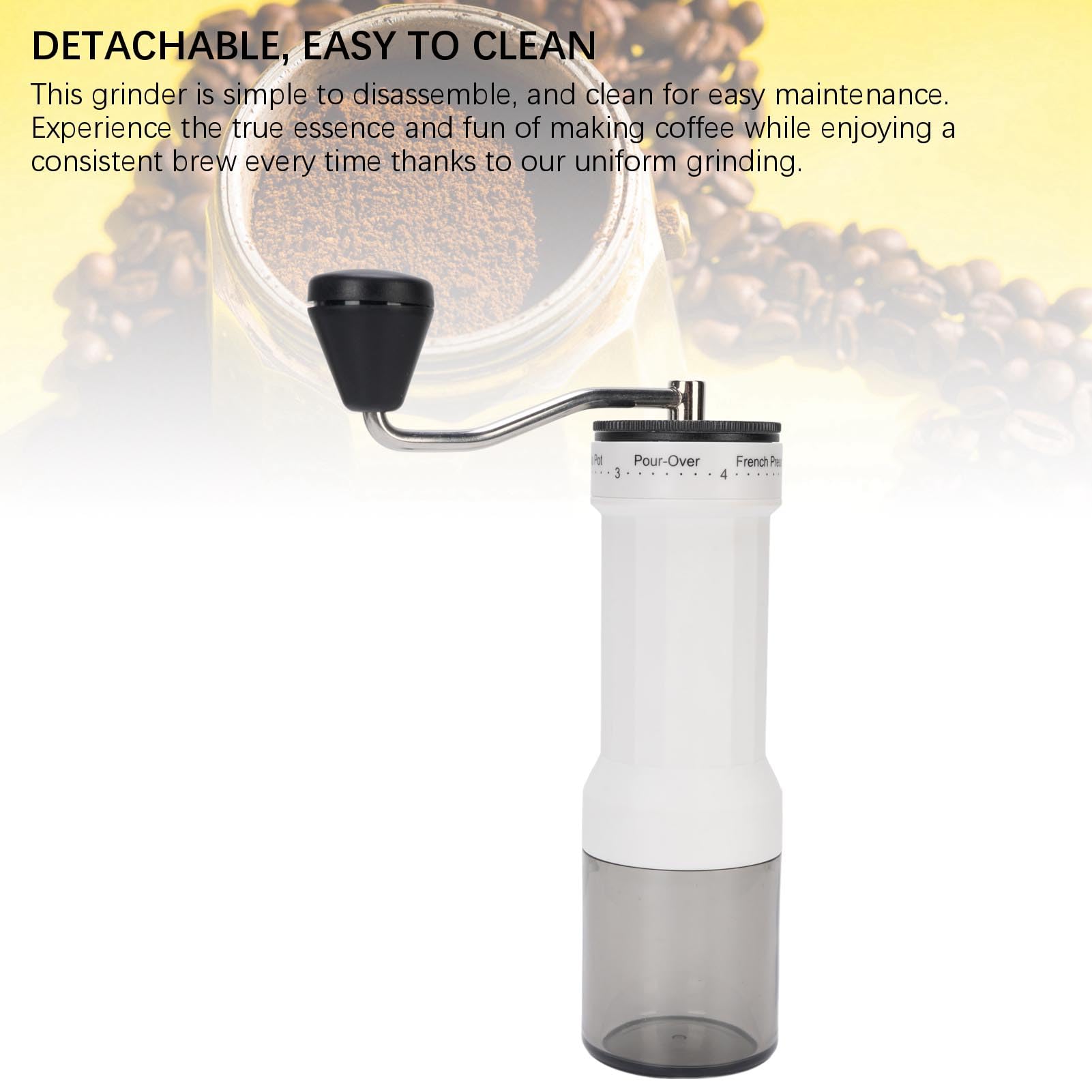 Il permet d'économiser du temps et des efforts en une seule étape et est le choix idéal pour la préparation quotidienne du café. Redécouvrez le véritable arôme du café avec notre moulin à café manuel de haute précision. Conçu pour les puristes et les aventuriers, ce moulin allie performance technique et design ergonomique pour transformer chaque grain en une expérience sensorielle unique Matériau : ABS + AS Matériau du noyau abrasif : noyau de ponçage en céramique de haute précision Le corps compact du moulin à café manuel est équipé d'une longue manivelle qui permet un effet de levier qui permet d'économiser du travail et une prise en main confortable. Il permet d'économiser du temps et des efforts en une seule étape et est le choix idéal pour la préparation quotidienne du café Noyau de broyage en céramique : le moulin à café manuel utilise des disques de broyage en céramique de haute qualité qui produisent peu de chaleur lors du broyage. Le broyage se fait en un tour de main et vous pouvez profiter de l'agréable plaisir d'un café fraîchement moulu à tout moment et n'importe où libérant ainsi tout l'arôme des grains de café 40 réglages de mouture externes précis pour le plus grand plaisir du café] - Découvrez des possibilités de personnalisation sans précédent avec notre moulin à café manuel, qui offre 40 réglages de mouture externes pour perfectionner chaque méthode de préparation libérant ainsi tout l'arôme des grains de café. Mini Moulin à Café Manuel Avec 40 Réglages Réglables, Moulin à Café Portable Avec Capacité De 30 G, Moulin à Café Conique Avec Manivelle Pour Voyage, Camping, Bureau, Expresso, Etc Moulin à Main Voyage Maison VGEBY Moulin à Café à Main Moulin à Café Manuel 6 Niveaux De Réglage Mini Moulin à Grains De Broyeur Café Portable Voyage Il est équipé d'une brosse de nettoyage spéciale qui est facile à entretenir sans lavage et reste ainsi en état de fonctionnement optimal pendant longtemps Contenu : 1 moulin à café Le moulin à café manuel utilise des disques de broyage en céramique de qualité supérieure qui produisent peu de chaleur lors du broyage. Cela empêche les températures trop élevées de détruire l'arôme du café. Cela garantit que chaque tasse offre le goût le plus pur des grains de café. Le moulin à grains peut moudre 25 g de grains de café à la fois, ce qui répond aux besoins de 1 à 2 tasses.
