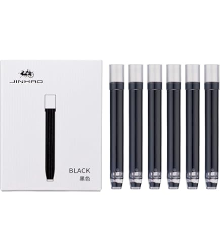 Veuillez d'abord retirer le convertisseur (pompe à encre) du stylo, puis insérer la petite partie de la cartouche d'encre dans le corps (vous sentez et entendez un clic, ce qui signifie que la cartouche est installée au bon endroit) et attendez une minute pour que l'encre coule à la pointe. Cartouches d'encre JINHAO pour tous les types de stylos plume JINHAO et Baoer. Longueur : 52 mm - Diamètre de la cartouche : environ 4-6 mm - Diamètre de perçage : 2,6 mm. Stylo Plume Rechargeable Jinhao Lot De 30 Cartouches D'encre Pour Stylo Plume Jinhao Carton Plume Cartouches d'encre JINHAO pour tous les types de stylos plume JINHAO et Baoer Cartouches d'encre JINHAO pour tous les types de stylos plume JINHAO et Baoer. Quantité : 30 pièces dans 6 cartons avec petit carton. Cartouches d'encre Jinhao pour tous les types de stylos...Gullor Lot de 35 cartouches d'encre pour stylo plume avec... 30 Uds. Cartuchos De Tinta Para Pluma Estilográfica Jinhao Universal Negro Azul Recargas De 2 6mm