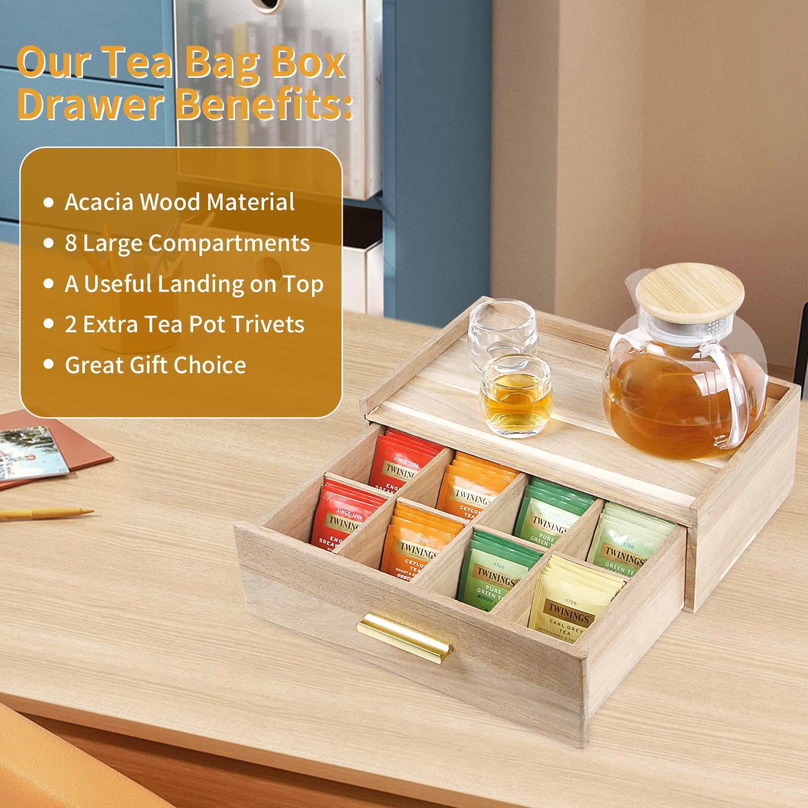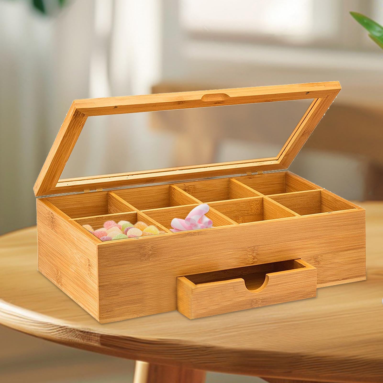 L'organisateur de boîte à thé est un excellent cadeau pour une pendaison de crémaillère, un mariage, Noël ou la fête des mères Boîte À Thé Pour Sachets De Thé [Compartiments Radiaux Extra Larges... Cette solution de rangement fonctionnelle aide à réduire l'encombrement et à organiser l'espace tout en ajoutant une touche d'élégance à votre espace. Organisez vos sachets de thé : la boîte à thé en bois peut vous aider à vous débarrasser de l'encombrement du comptoir de cuisine et garder vos boîtes à thé et boîtes organisées. Le porte-sachets de thé comprend 2 séparateurs amovibles que vous pouvez stocker différents types de sachets de thé dans différentes zones, ce qui vous permet de trouver plus facilement vos sachets de thé préférés Boîte à Thé Organisateur De Sachets De Thé,Boîte En Bois à 12 Compartiments Boîte Rangement Thé Bois Couvercle en verre transparent : le design en verre transparent permet à l'utilisateur de voir exactement quelle saveur il veut et de voir et de savoir quand il est temps de remplir le récipient à nouveau, offrant plus de commodité. DEAYOU Organiseur de sachets de sucre en bois, boîte à sachets de Design multifonction : en tant qu'organisateur de théière multifonctionnel, vous permettant de stocker non seulement un thé mais aussi une boîte à bijoux, un présentoir de montres, des objets de collection, des fournitures d'artisanat, des petits articles de bureau et d'autres petits accessoires. Avec 12 compartiments également divisés, garde vos sachets de thé frais, organisez et séparez différents paquets de thé, crèmes, cubes de sucre, dosettes de café, café instantané, cette boîte peut facilement contenir plus de 200 sachets de thé.
