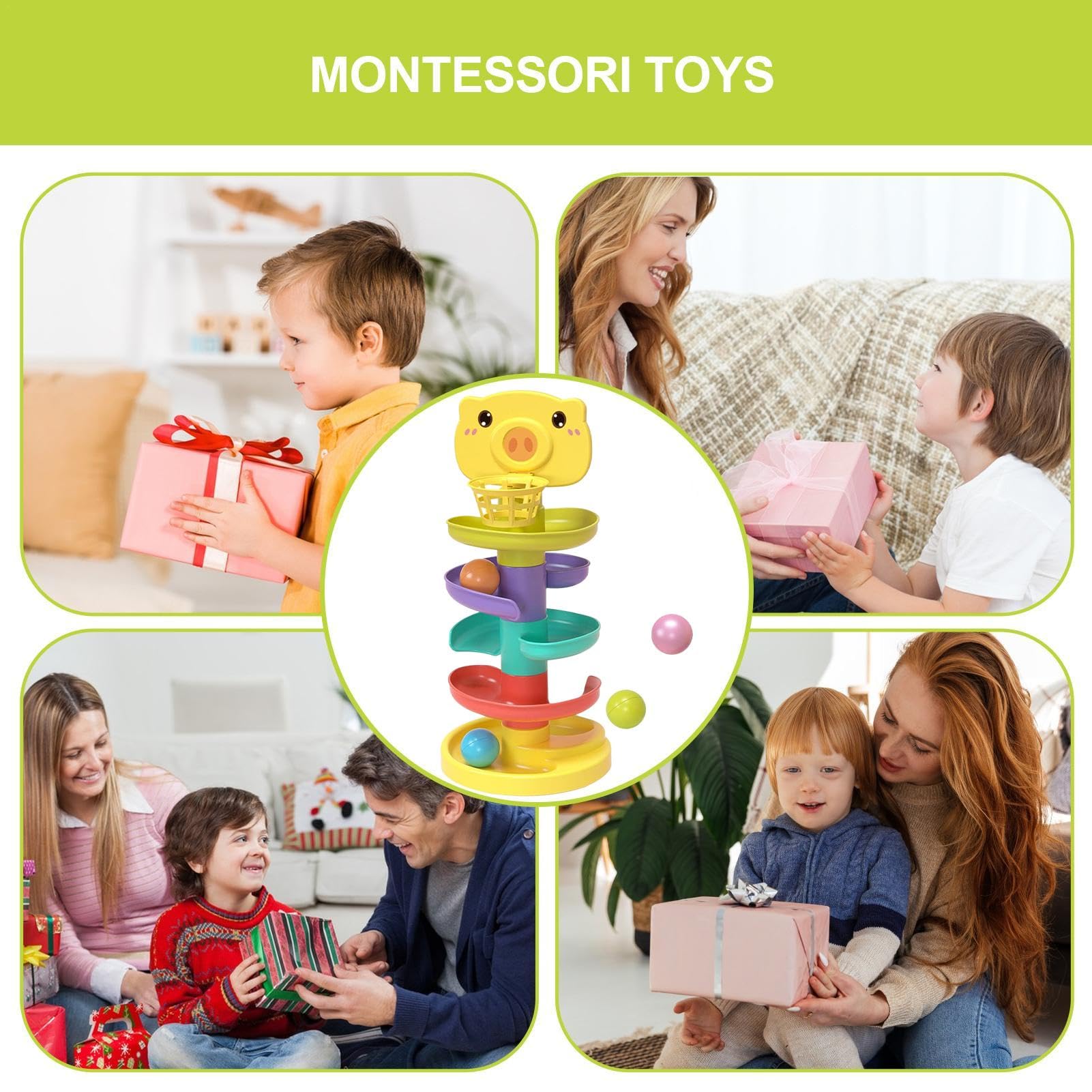 Conception portable: La chute de balle en spirale est portable et légère, ce qui la rend simple à manipuler dans la main. Il peut être utilisé à la maison, à l'école ou en voyage ABS fiable : assurez la santé de votre enfant et protégez l'environnement avec cette tour à billes. Tour De Chute De Balle Motricité Jouet De Chute De Balle, Tour De Chute De Balle - Jouet Sonore Tour à Billes Abs Colorée 33 Cm Description du produit Faites passer votre entraînement de force de préhension au niveau supérieur tout en aidant l'environnement avec notre jouet coulissant à balle. AMUSEMENT EN FAMILLE : Jouer avec la tour à billes augmente l'intimité familiale. Créez des expériences précieuses, augmentez la confiance, établissez des liens durables avec votre enfant et créez des souvenirs amusants. Ce modèle de tour à balles est simple à monter. Votre enfant pourra apprendre petit à petit à monter lui même son propre circuit pour jouer. L'activité de construction lui sera très bénéfique pour le développement de ses capacités cognitive et l'amélioration de son imagination Tour De Chute De Boule en, Jouets Mignons De Chute De Balle De plus, cela fait un drôle de bruit lorsque vous laissez tomber la balle. Encourage la croissance cognitive : les effets sonores stimulants de la tour à billes améliorent les compétences logiques et analytiques de votre enfant en enseignant les relations de cause à effet Notre design de cochon de dessin animé créera des souvenirs heureux inoubliables pour ceux qui jouent avec.