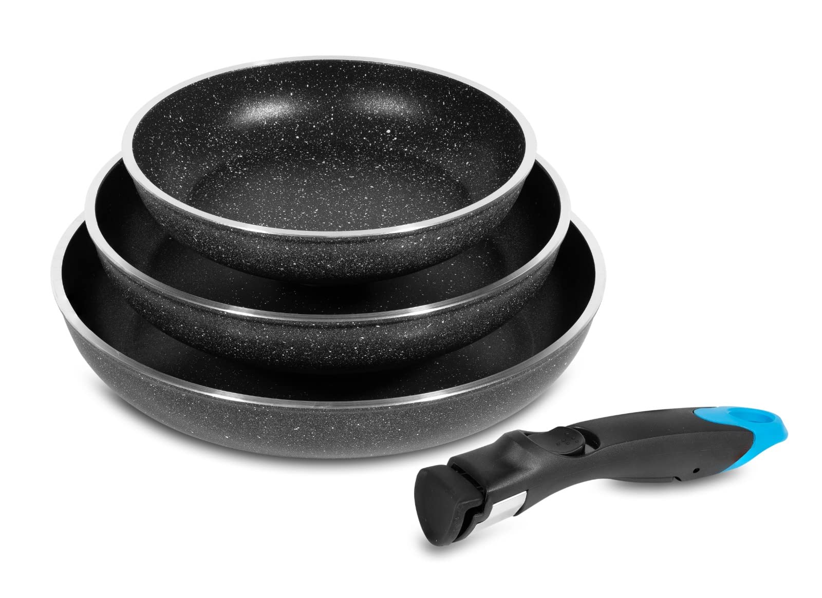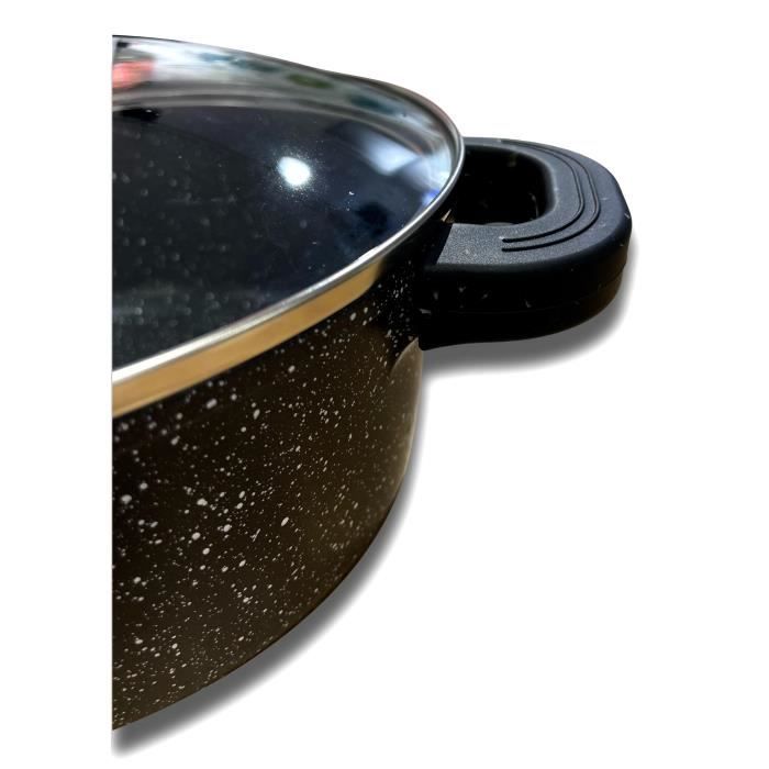 Structure en fonte d’aluminium – Revêtement anti-adhérent façon pierre – Compatible tous feux dont induction – 3 manches amovibles inclus. 3 poêles 20 / 24 / 28 cm Premium en fonte d'aluminium, pour répondre à tous vos besoins en cuisine Profitez d'une cuisson uniforme et d'une durabilité exceptionnelle avec cet ensemble de marmites premium. Set Casserole Et Poele Induction Marmites Sans PFOA Set 3 Marmites En Pierre Eisenbach - 20/24/28 Lot Marmites Anti Adhésives Découvrez ce magnifique lot de 3 marmites Eisanbach, conçues pour répondre à tous vos besoins culinaires. COMPATIBILITÉ UNIVERSELLE: Adaptées à tous types de feux, y compris l'induction, pour une utilisation quotidienne pratique POIGNÉES PRATIQUES: Poignées en silicone amovibles pour une manipulation sécurisée et un rangement optimisé Cette marmite familiale est idéale pour tous types de plats, elle peux être utilisé également comme marmite professionnelle pour les restaurants, traiteurs... Une marmite de cuisson grande capacité qui répondra aux exigences de la cuisine pour familles nombreuses PRADEL EXCELLENCE Lot de 3 marmites ovales façon pierre - 3,8 L - Noir Leur design élégant avec finition effet pierre et leur construction robuste en font un ensemble indispensable pour la préparation de vos plats quotidiens. ENSEMBLE COMPLET: Lot de 3 marmites en pierre de 20 cm, 24 cm et 28 cm, parfaites pour une cuisine familiale polyvalente Ces marmites de 20, 24 et 28 centimètres sont dotées d'un revêtement en pierre anti-adhésif de haute qualité, sans PFOA, pour une cuisson optimale et un nettoyage facile.