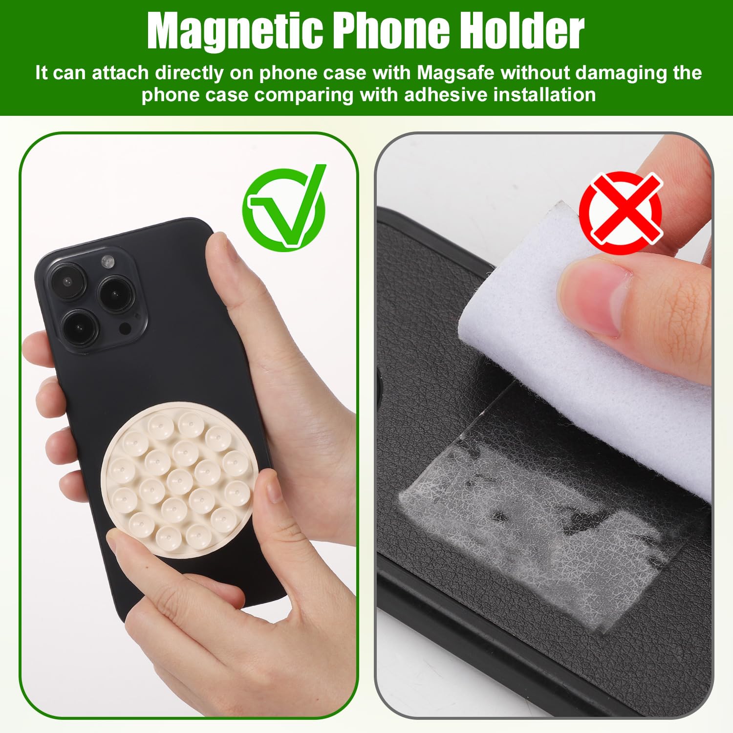 Le Sticky Phone Grip magnétique est portable et polyvalent pour une utilisation quotidienne. Ce support de téléphone magnétique à ventouse est facile d'utilisation. Il suffit de fixer une plaque magnétique à votre téléphone pour l'aimanter au support Son design à vene permet de fixer votre téléphone sur des , portes, fenêtres, miroirs ou surfaces de salle de bain. En raison de la différence de mesure manuelle, veuillez permettre une différence de taille de 1 à 3 cm. Performance fiable et flexible pour de multiples types de surfaces. Support Téléphone Collant Support Collant Pour Téléphone, Fixation Adhésive En Silicone Ventouse Collante Silicone Idéal pour les selfies, le tournage, l'enregistrement, le vlogging et les activités de plein air. Silicone Performant: Composé de silicone avancé, il combine une excellente rétention de forme à long terme et une parfaite résistance à l'usure et aux dommages, garantissant une fonctionnalité soutenue et une prise en main fiable lors des activités quotidiennes. Sécurité : Adhésion puissante sur plans de cuisine, réfrigérateurs, carrelages de salle de bain et vitres. Renforcez la créativité et la commodité dans vos projets grâce au Sticky Phone Grip. Support Ventouse Magnétique Premium UN-32 Noir Spécification:Matériel: siliconeTaille du produit: environ 8,9x6x0,7 cm / 3,5x2,36x0,28 poucesPoids: 50gApplicable à: téléphones mobiles avec aspiration magnétique intégréeListe des produits:1 * Grip de téléphone collantNotes: En raison de différents paramètres d'éclairage et d'écran, la couleur du produit peut être légèrement différente de l'image. Trouvez Support de téléphone magnétique à ventouse en silicone amélioré 2024, support universel pour smartphone rotatif à 360°, forte absorption magnétique, compatible avec les séries iPhone 12/13/14 et autres modèles avec anneau métallique ou étui MagSafe, matériau ABS , qui fait de notre dernière Cell Phones & Accessories à magasiner en ligne dès